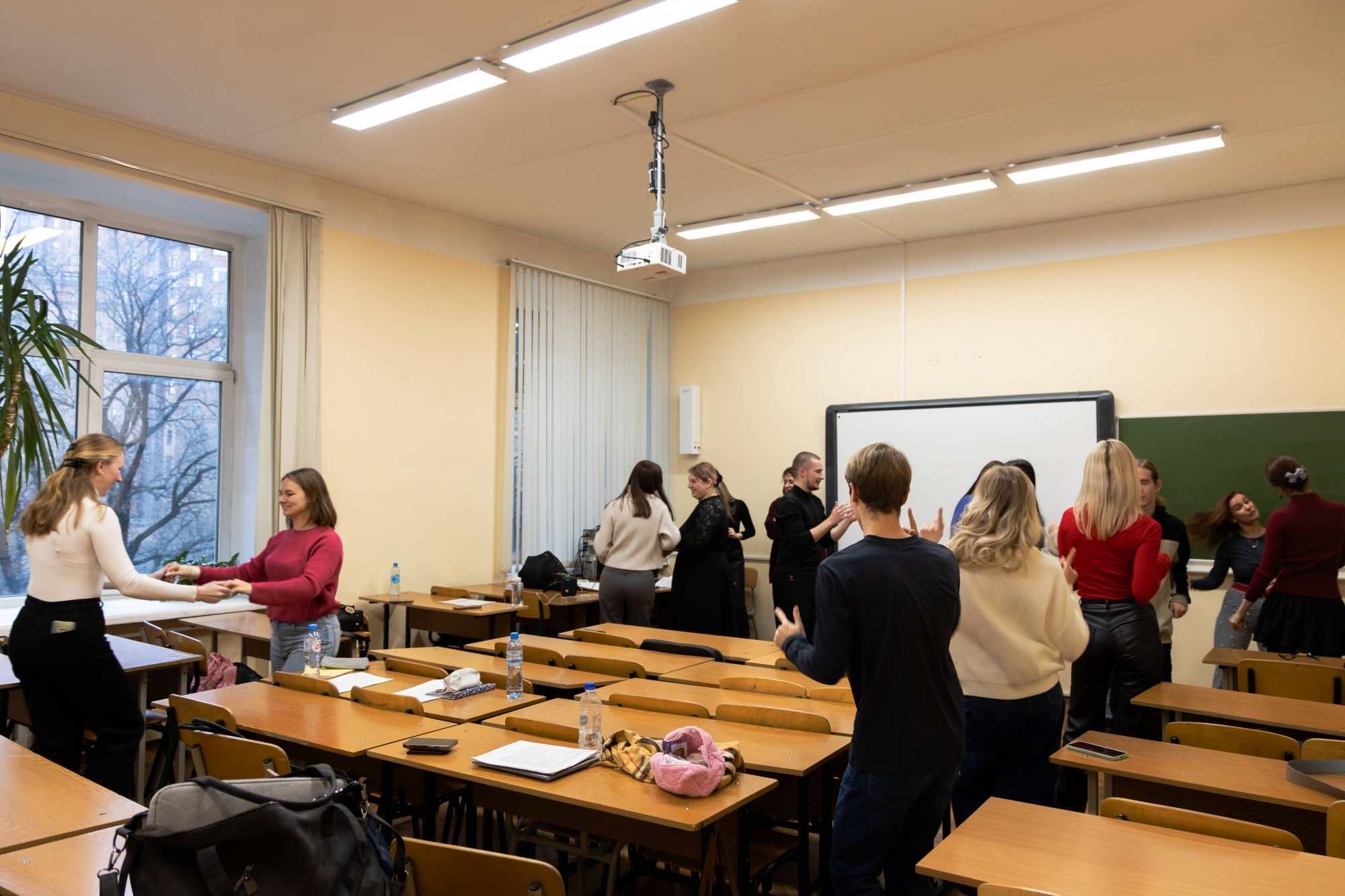 19 ноября кандидат психологических наук, доцент кафедры общей психологии и психологии труда Гуманитарного института РосНОУ Полина Александровна Козинцева и студентка магистратуры ГИ РосНОУ Диана Денисова провели мастер-класс «Метафоры танцевально-двигательной терапии в практике психолога».