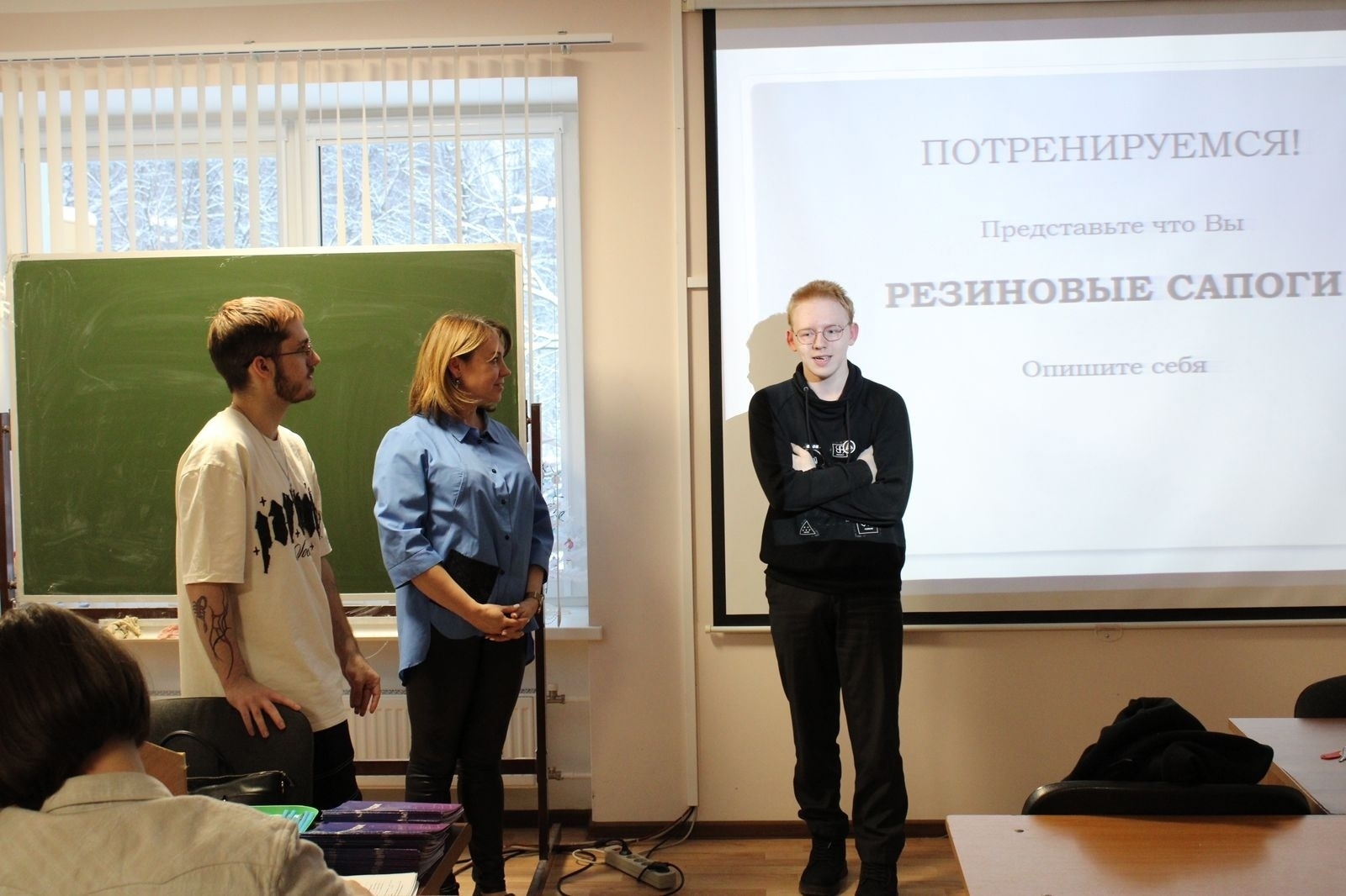 Организаторы предложили будущим рекламистам провести мозговой штурм и представить себя в новой роли и затем придумать презентацию. Помогал им в этом студент старшего курса Ярослав Барба: