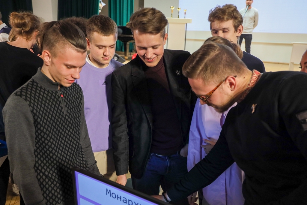 — Современный интеллектуальный триатлон — это три игры, разработанные в РосНОУ: «Чтогдекогдариум», «Минус один» и «Плюс один», — рассказал ведущий игры, руководитель проектного офиса университета Игорь Евгеньевич Мытько. — Чтобы не перегружать команды первого курса, мы предложили сыграть в «Чтогдекогдариум» старшекурсникам, младшим же командам досталось связка «Минус один» и «Плюс один» — своего рода интеллектуальный биатлон. Впрочем, как показала игра, первокурсники к нам пришли не только умные, но и быстрые, они справились бы и со всеми компонентами триатлона.