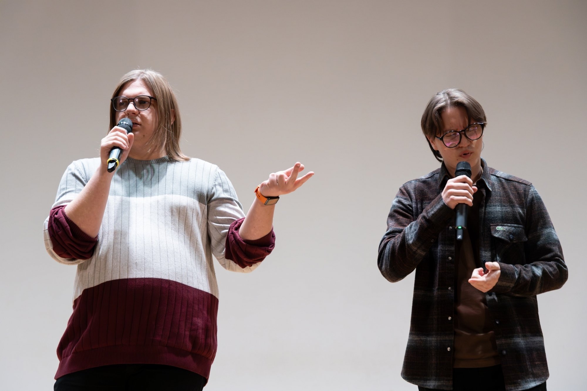 Ведущая вечера — Елизавета Головина (участница Высшей лиги КВН в составе команды «Красный Лис», Владивосток; шоу «Лига городов» на ТНТ в составе «Хип-хоп трио Чупа-Чупс», Владивосток).