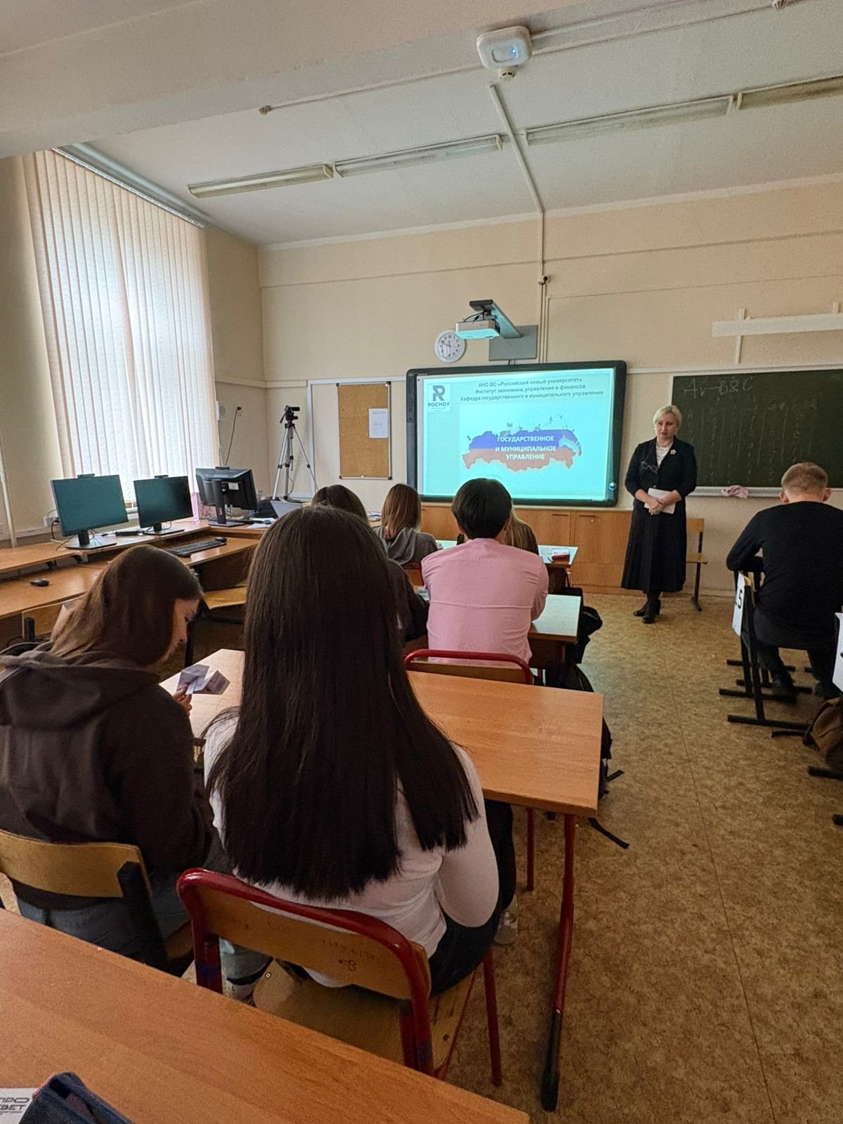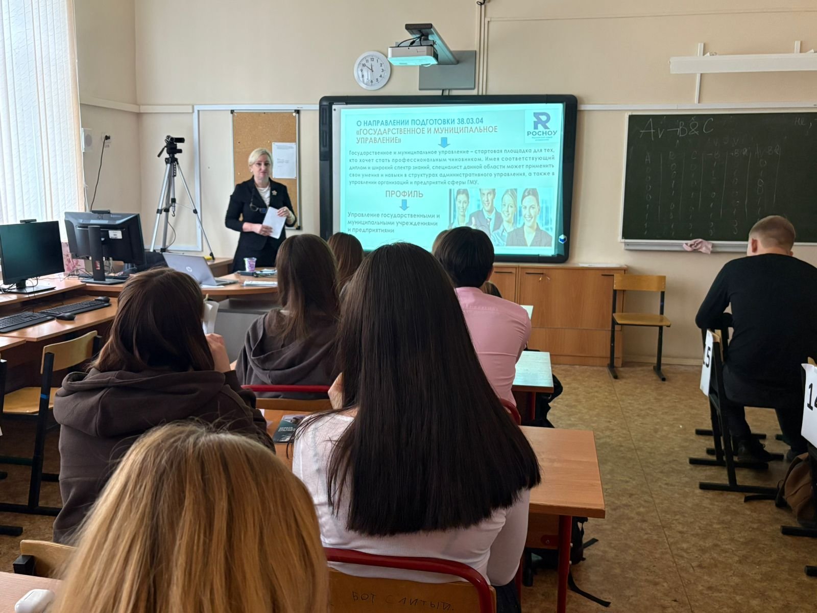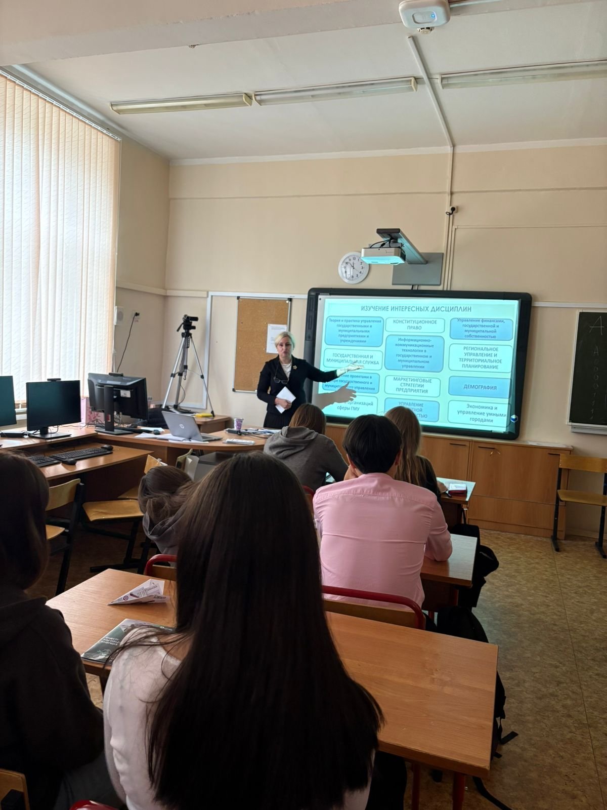 В ходе встречи школьники узнали о профессиональном портрете современного государственного и муниципального служащего, о ключевых компетенциях, необходимых для эффективного выполнения должностных обязанностей и о возможностях профессиональной реализации в сфере государственного и муниципального управления.