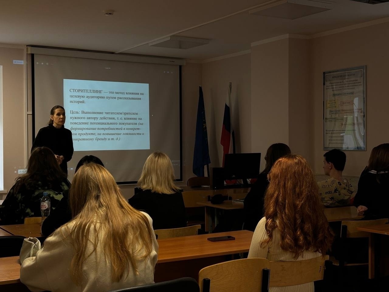 18 ноября для первокурсников и четверокурсников направления «Реклама» состоялись открытые уроки по дисциплине «Основы журналистики» на тему «Сторителлинг в профессиональной деятельности». Занятия провела преподаватель профессиональных дисциплин Колледжа РосНОУ, журналистка Марина Александровна Федулова.