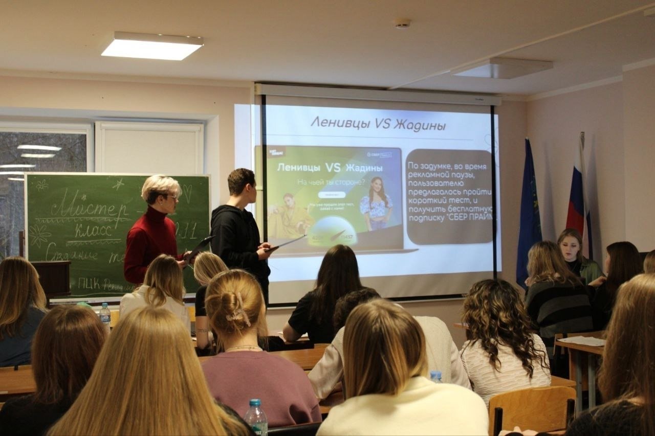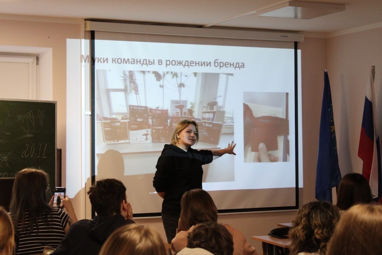 Елизавета Сергеевна рассказала о работе своего отдела по маркетингу и рекламе и вместе со студентами разобрала несколько рекламных кампаний: прошедшую, на стадии разработки и готовящуюся к запуску.