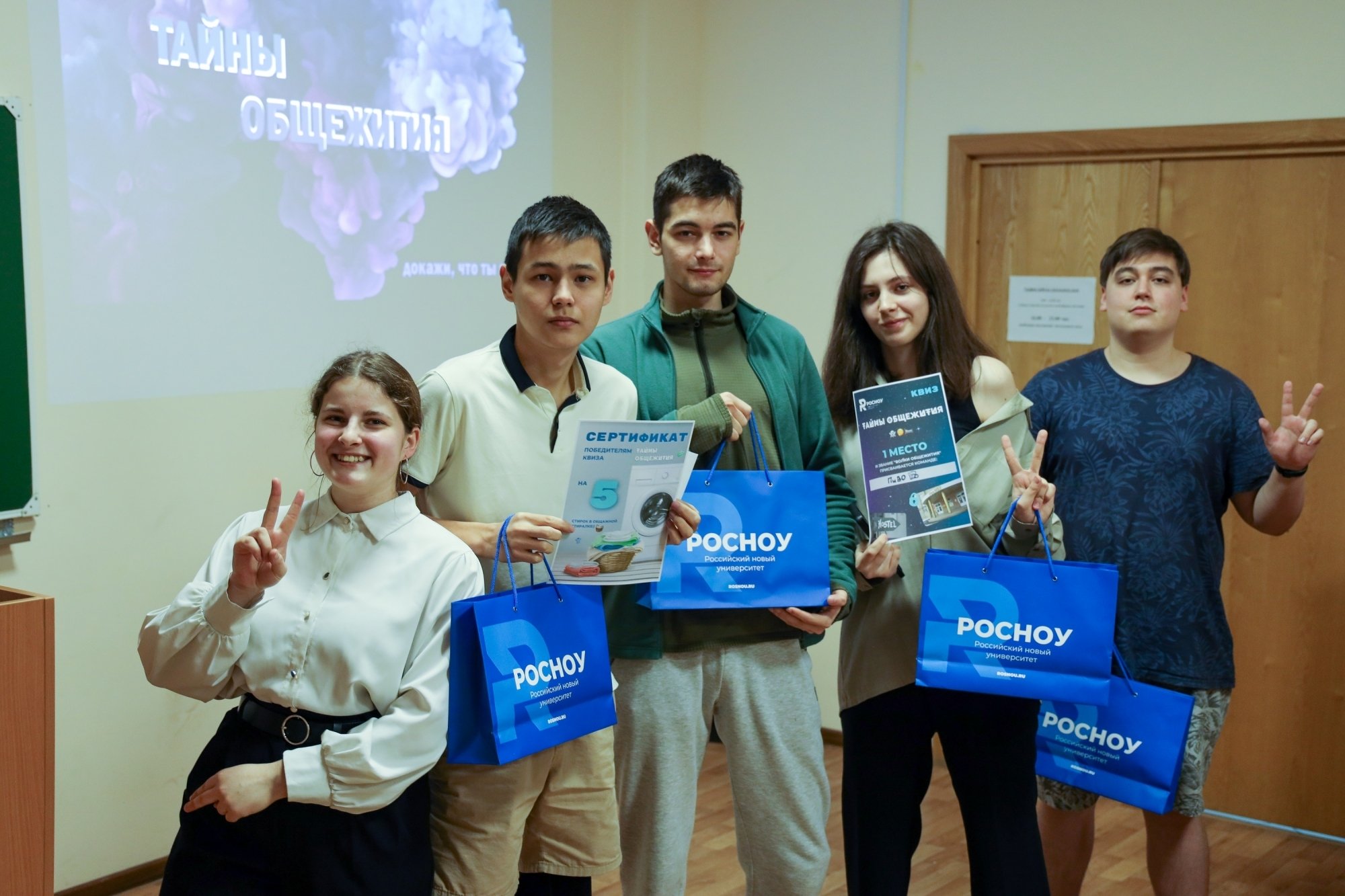 Звание «Волки общежития», сертификат на 5 бесплатных стирок и футболки с мерчем «РосНОУ» получила команда под названием «пЫво». Они набрали максимальное количество баллов. Остальным вручили памятные сувениры.