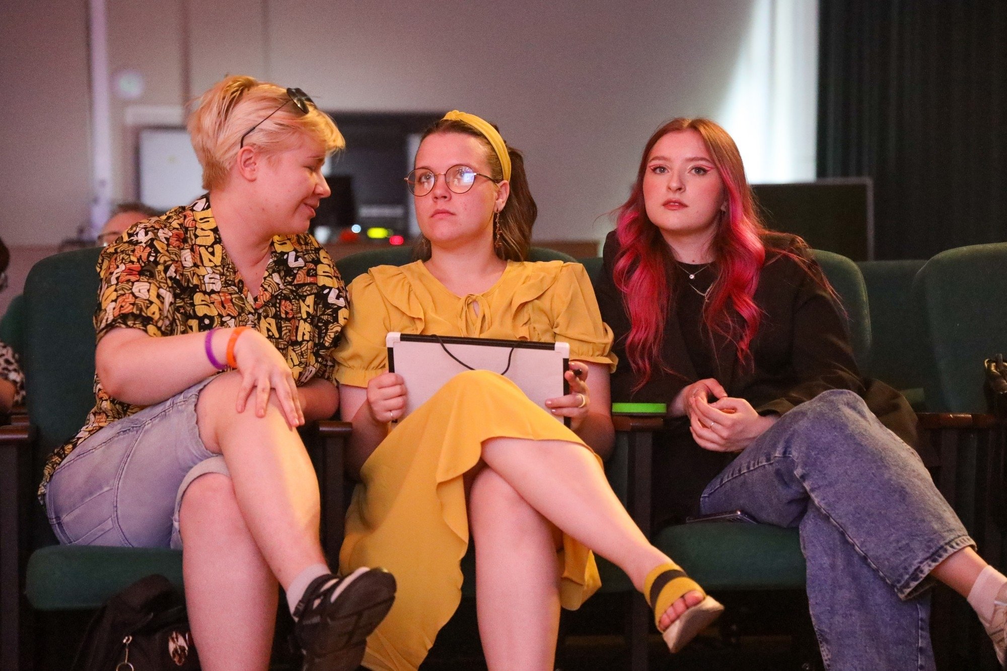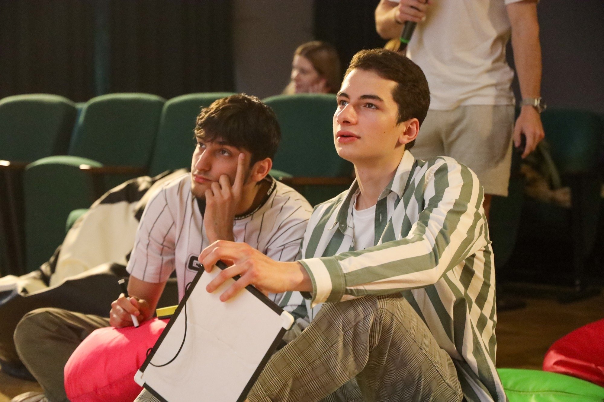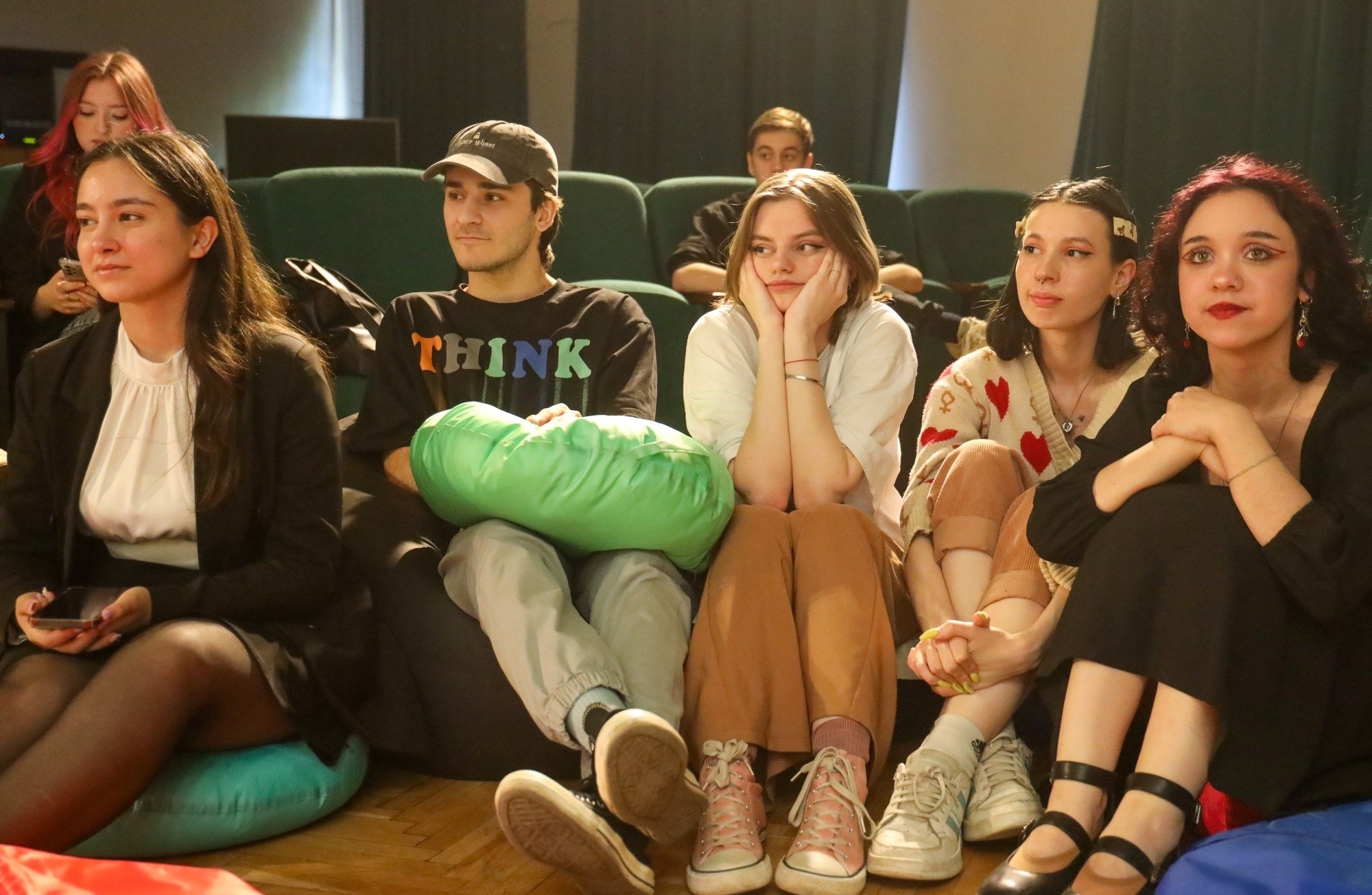 — У нас сегодня коллаборация творческих студий и вместо того, чтобы сделать нормальный репортаж, эти ребята решили поиграть в КВН. Давайте их поприветствуем так, как обычно вы приветствуете кавээнщиков — хлопаем глазами. Аплодисменты.