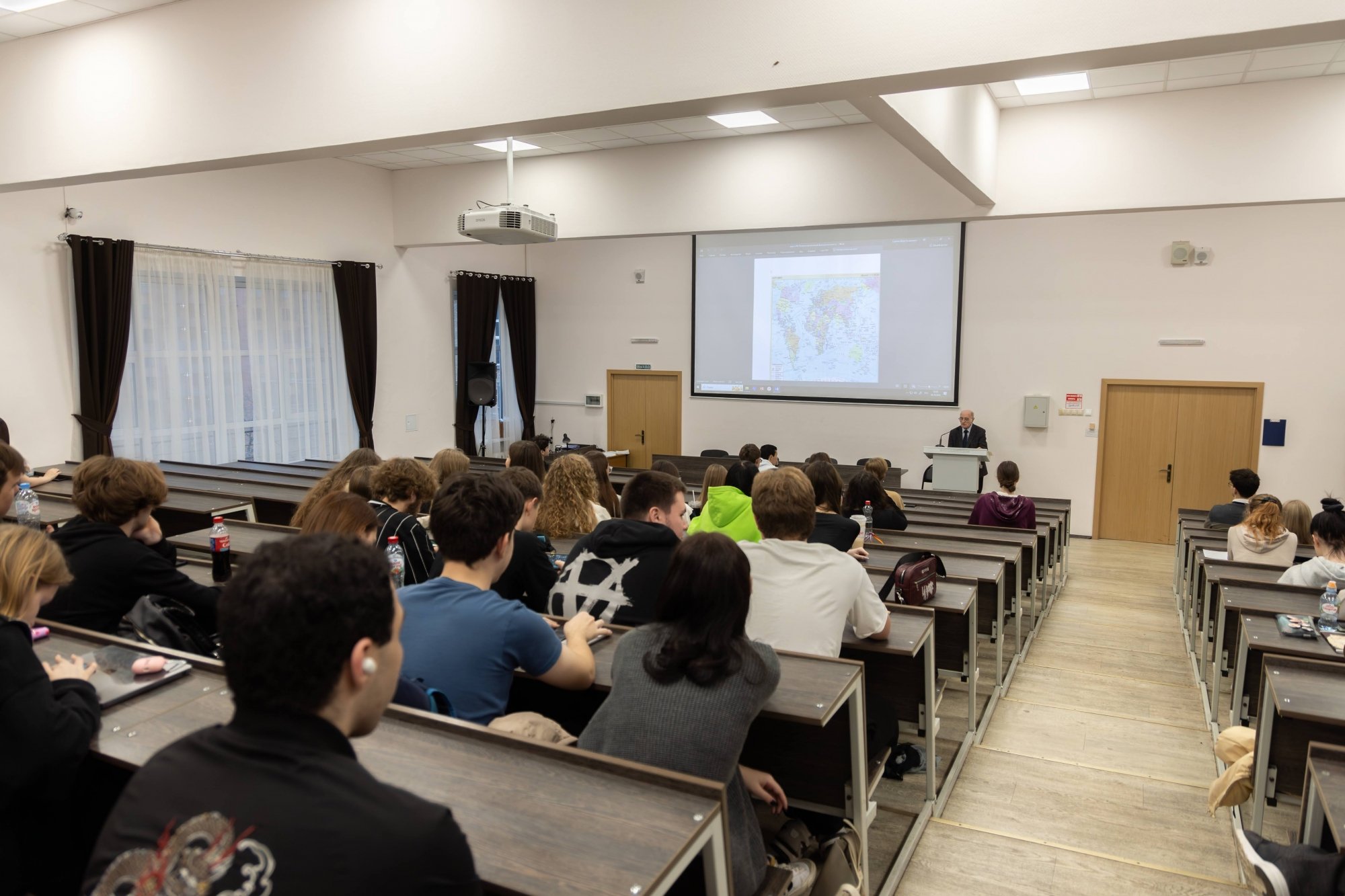 28 октября для студентов Российского нового университета (РосНОУ) состоялся кинолекторий «Россия в современном мире». Его провёл преподаватель РосНОУ Василий Иванович Кирмикчи, сопроводив свой рассказ фрагментами из документальных фильмов.