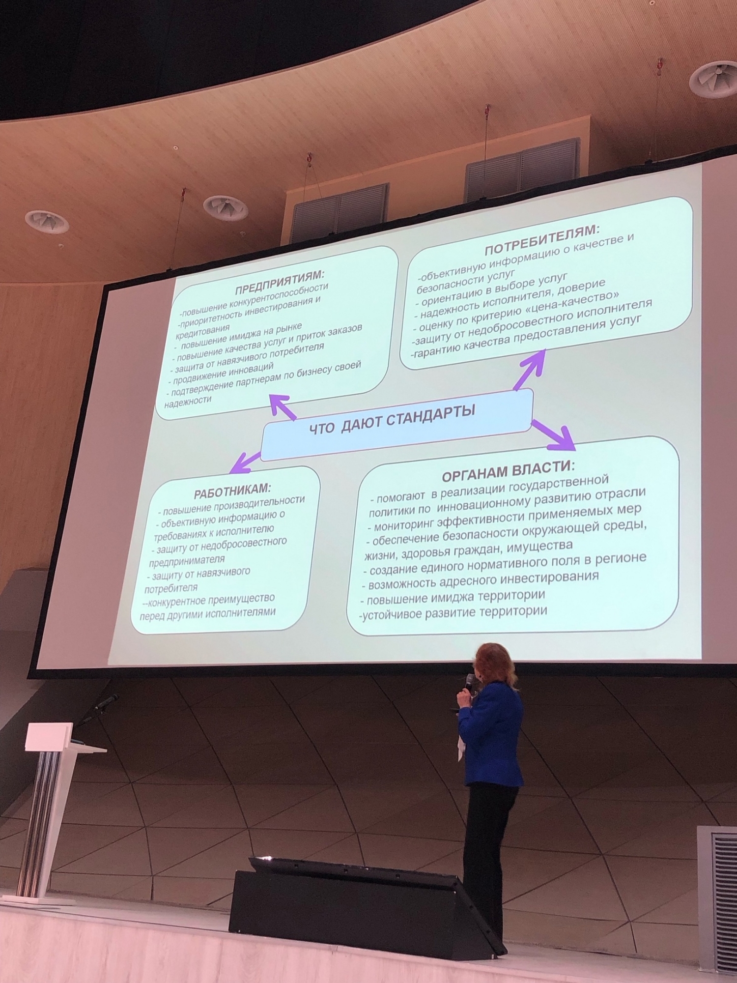 Студенты РосНОУ посетили лекции и мастер-классы, на которых познакомились с новыми технологиями клининга, современным уборочным инвентарем, алгоритмом очистки помещений и городских локаций. Кроме того, в рамках форума преподаватель кафедры туризма и гостиничного дела РосНОУ, доктор экономических наук, профессор Зворыкина Татьяна Ивановна выступила с докладом на тему «Стандартизация. Система оценки качества организаций профессиональной уборки. Инновационная роль технического регулирования в развитии индустрии чистоты».