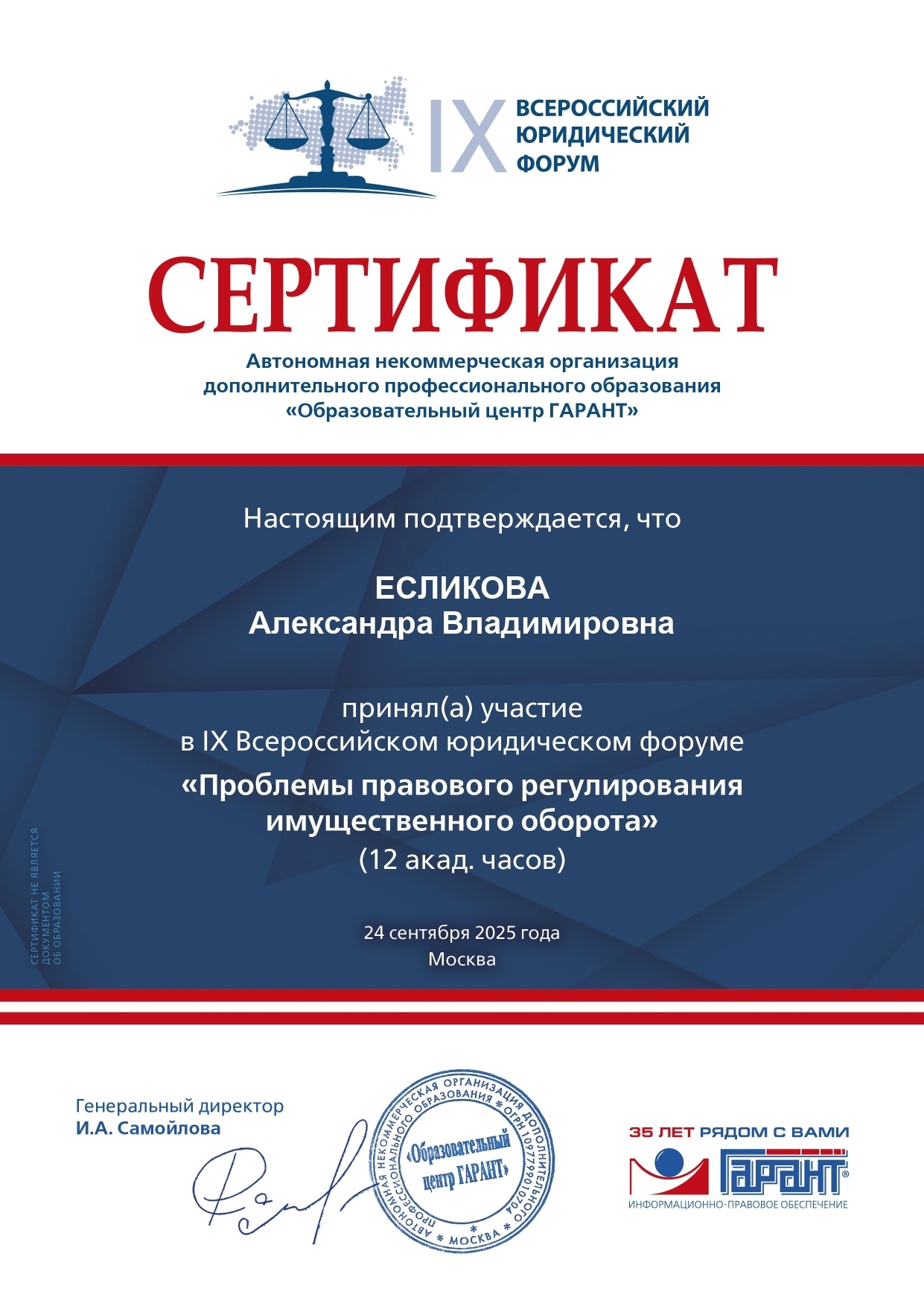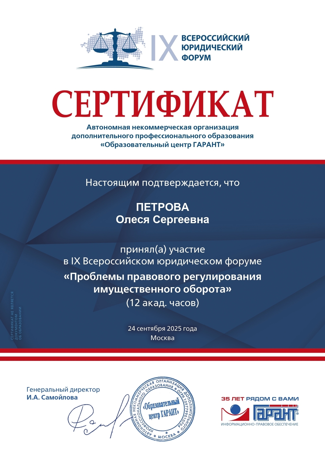 24 сентября 2025 года студенты третьего и четвертого курсов Юридического института Российского нового университета (ЮИ РосНОУ) направления подготовки «Юриспруденция» приняли участие в IX Всероссийском юридическом форуме.