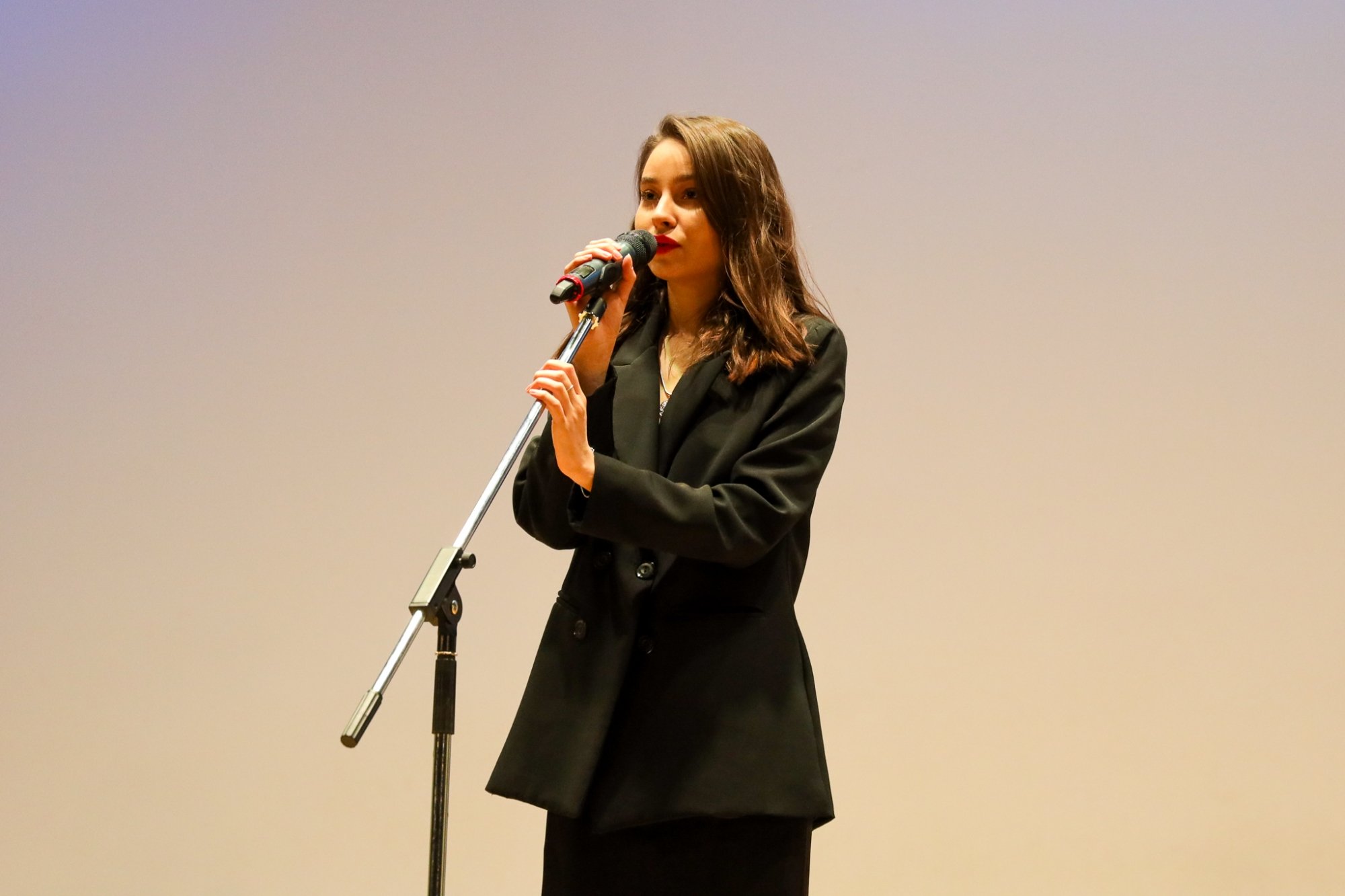 Ведущая Юлия Платицына, студентка первого курса Института бизнес-технологий прочитала лирическое стихотворение.
