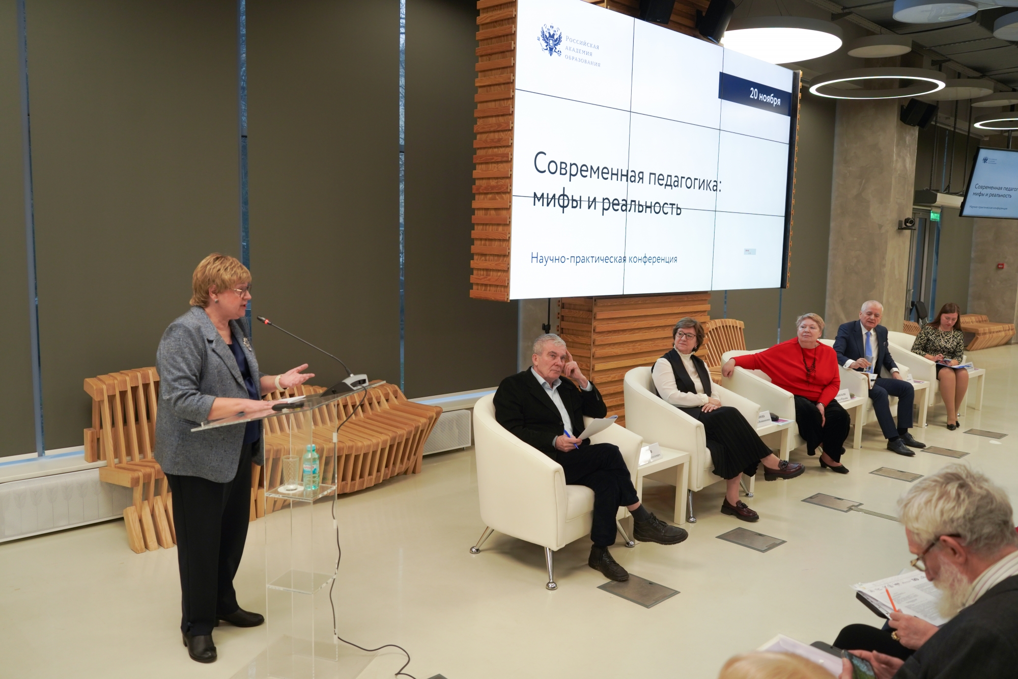 20 ноября в Российской академии образования (РАО) прошла научно-практическая конференция «Современная педагогика: мифы и реальность». В ней приняли участие члены и сотрудники Российской академии образования, региональных научных центров РАО, классических и педагогических университетов, докторанты и аспиранты, исследующие вопросы педагогического образования. Обсуждались теоретические и научно-практические проблемы, а также основные векторы научных исследований в высшей школе.