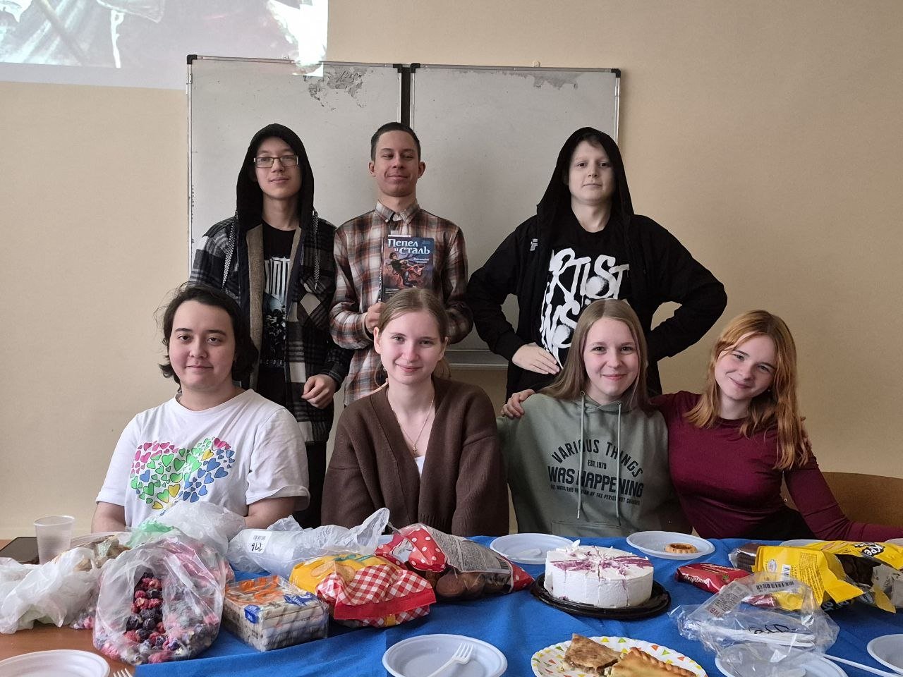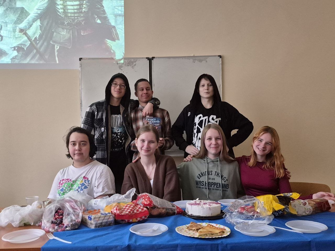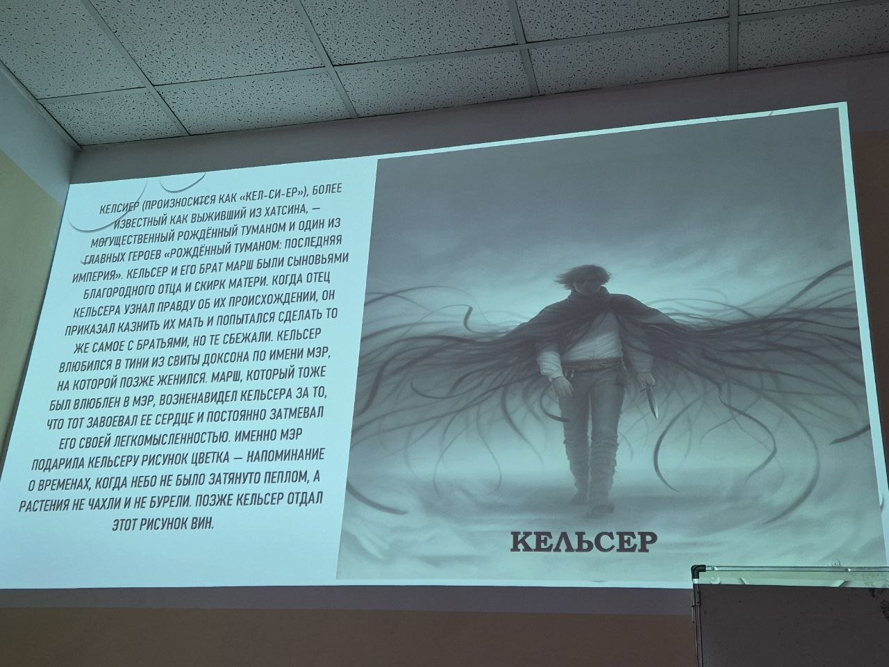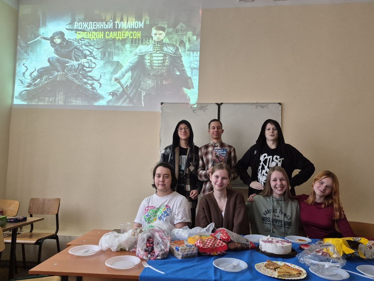 Конкретно эту книгу внёс в общий список Слава Боровиков, поэтому на встрече он рассказал о её создателе и о сюжете, и даже подготовил презентацию с изображениями основных персонажей. Мы с ребятами обсудили систему магии этого мира, комбинации и особенности металлов, оценили большинство персонажей. Все сошлись на том, что наиболее полно были раскрыты главный герой Кельсер и главная героиня Вин.