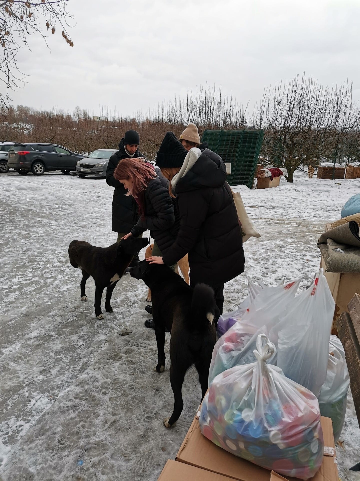 Это была моя первая поездка в приют в качестве руководителя корпуса. Студенты и сотрудники собрали очень много нужного приюту: корм, игрушки, лекарства, витамины. А ещё, помимо товаров, мы привезли несколько пакетов ранее собранных пластиковых крышечек, которые приют собирает на переработку.