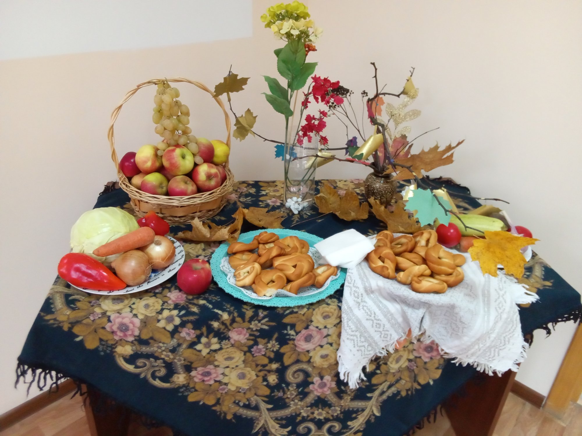 Украшением праздника стали поделки из осенних листьев и цветов, композиции из традиционных сезонных фруктов и овощей, национальная русская выпечка.