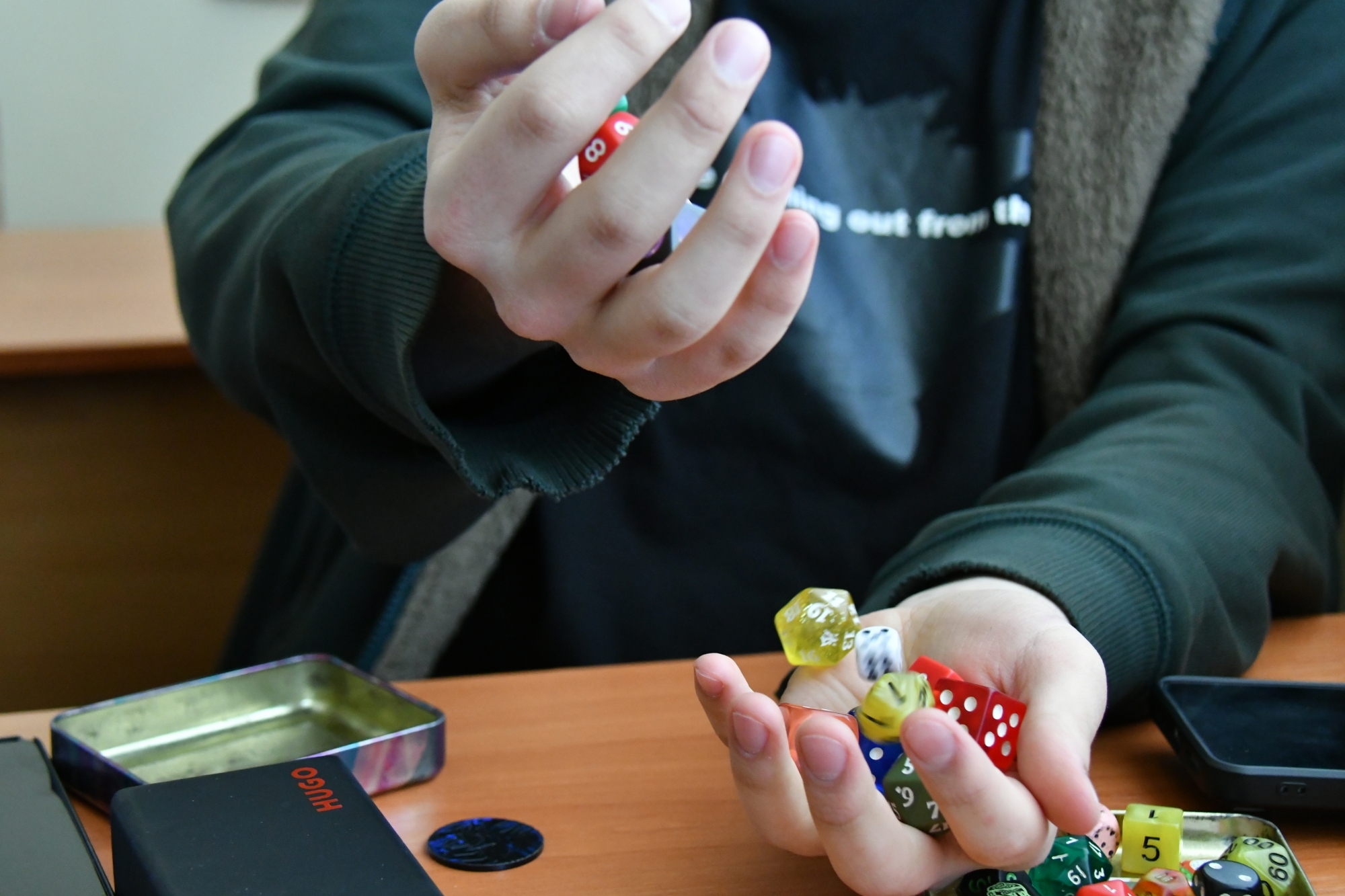 Я состою в клубе D&D, а один из моих друзей учится в РосНОУ и пригласил меня на турнир. Играю год или полтора, любимых персонажей нет, я их меняю. Игра прикольная, потому что в ней есть что-то из миров Толкина — полурослики, гоблины, гномы. Сюжеты игр в теории должны писаться заранее, но на практике — это полная импровизация, что добавляет азарта.