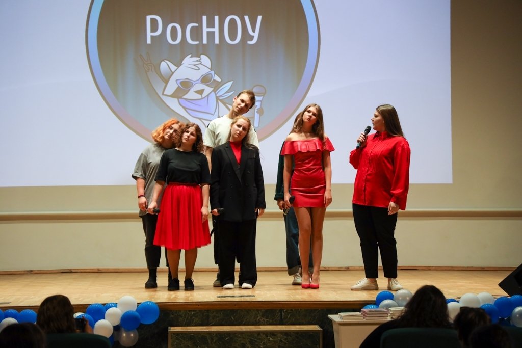В Университете почти два десятка направлений внеучебной деятельности. Можно заниматься творчеством, наукой или политикой, можно увлечься спортом, а можешь успеть все и сразу. О студенческих объединениях, которые работают в РосНОУ давно и успешно, и о новых проектах этого учебного года рассказали первокурсникам ведущие презентации Егор Колесников и Виктория Тургунова. Прямо во время презентации по QR-коду можно было зайти на страницу объединения в соцсетях, а сразу после — пообщаться лидерами студенческих сообществ и узнать все подробности.