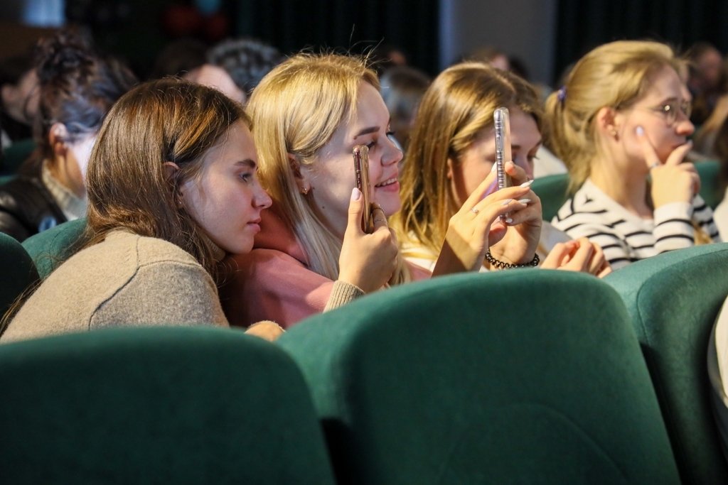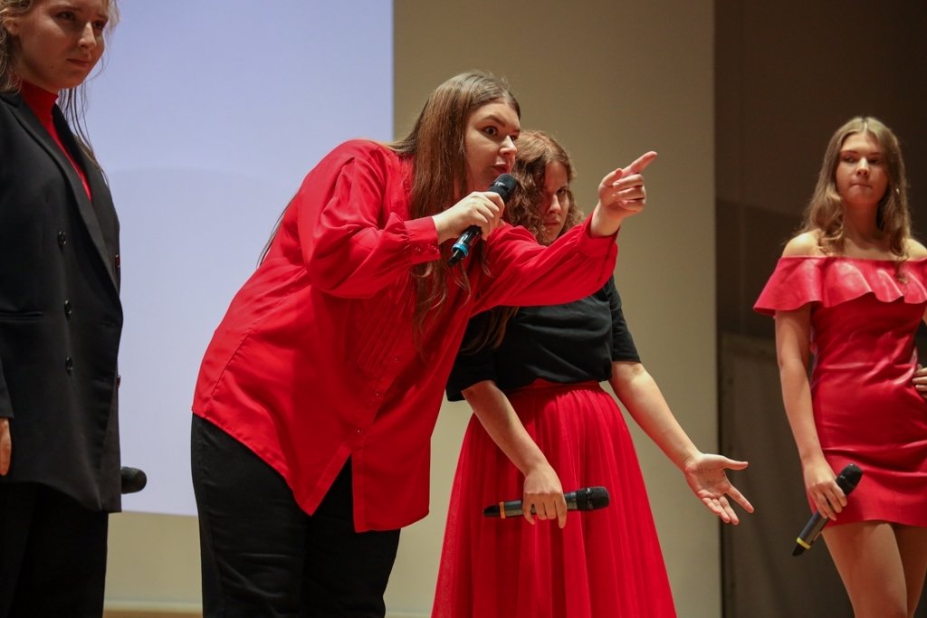 Презентация была яркой и насыщенной — такой же может стать жизнь студента, который будет готов заняться не только учебой. Со сцены звучали стихи от участницы театральной студии Любови Кловиной и песни от звезды студии вокала Кристины Кулешовой.