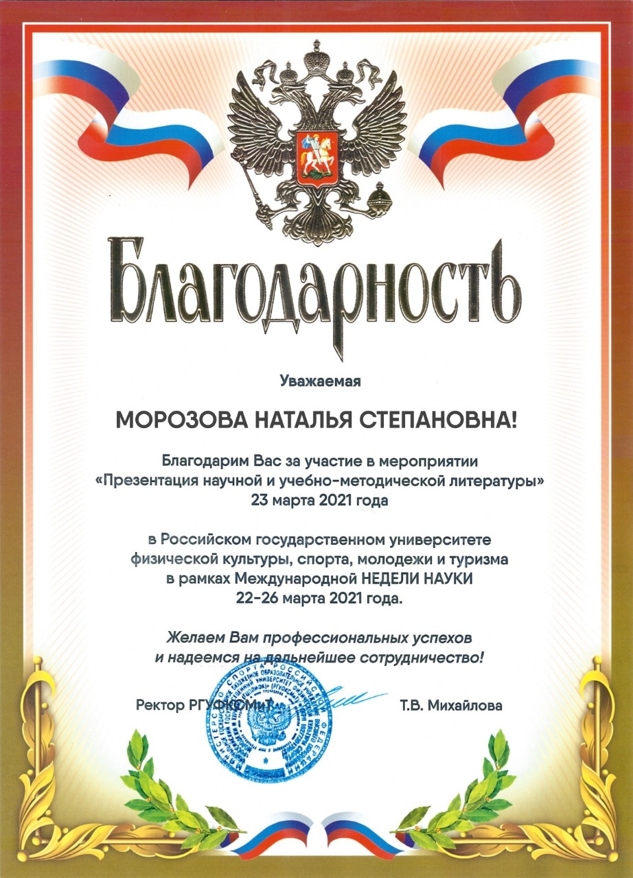 23 марта 2021 года научный руководитель Института бизнес-технологий Российского нового университета (РосНОУ), доктор экономических наук, профессор Наталья Степановна Морозова и профессор кафедры туризма и культурного наследия РосНОУ, доктор экономических наук, профессор Михаил Анатольевич Морозов выступили в рамках мероприятия «Презентация научной и учебно-методической литературы» на международной Неделе науки со своими работами, изданными в 2019-21 году. Были представлены монография «Экономика туристских дестинаций», учебники «Экономика туризма», «Экономика организации туризма», «Реклама в социально-культурном сервисе и туризме», словари «Туризм» и «Гостиничное дело». В подготовке словарей также приняли участие преподаватели института бизнес-технологий.