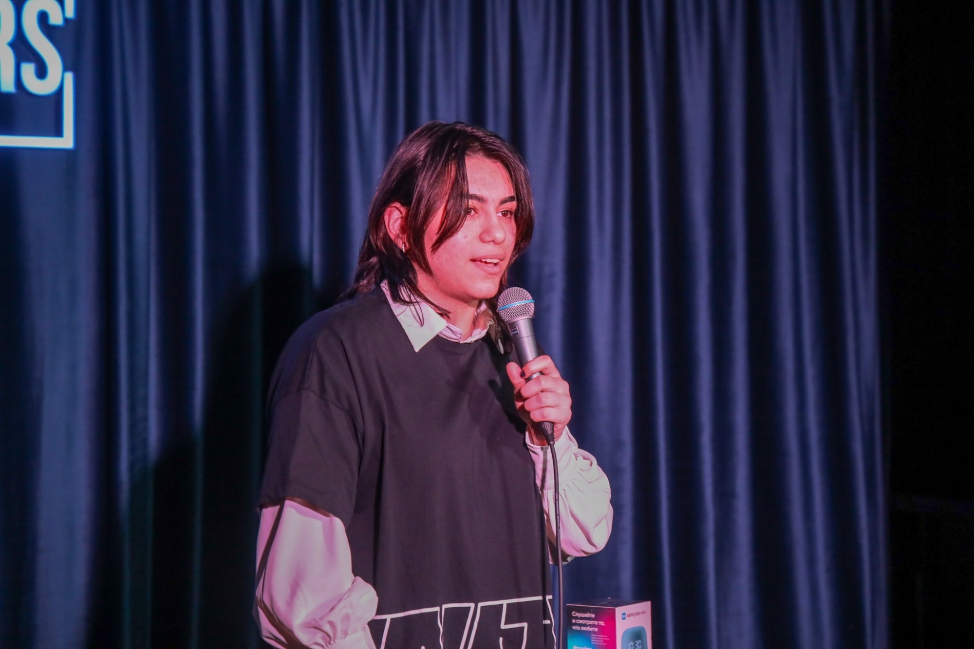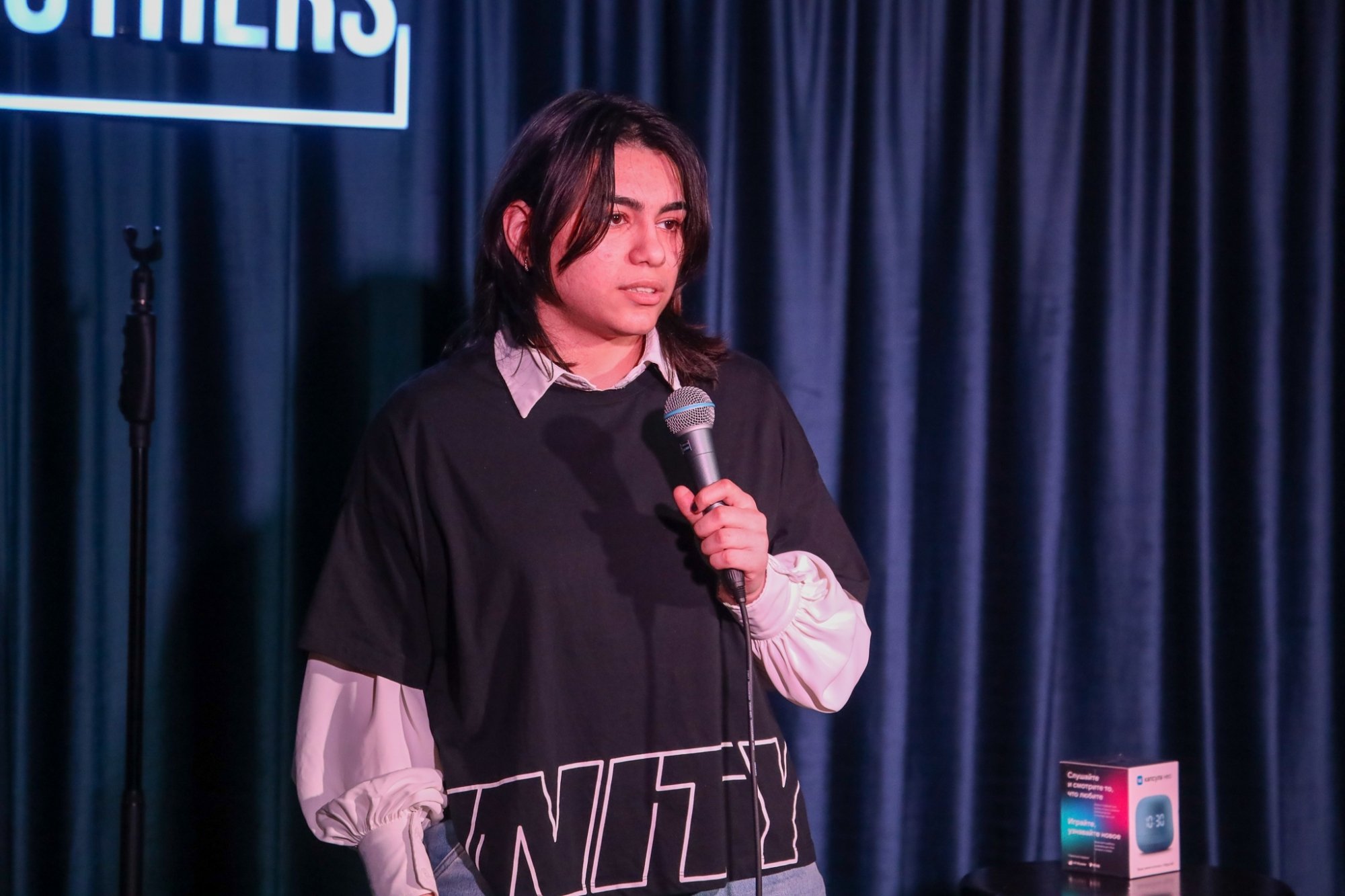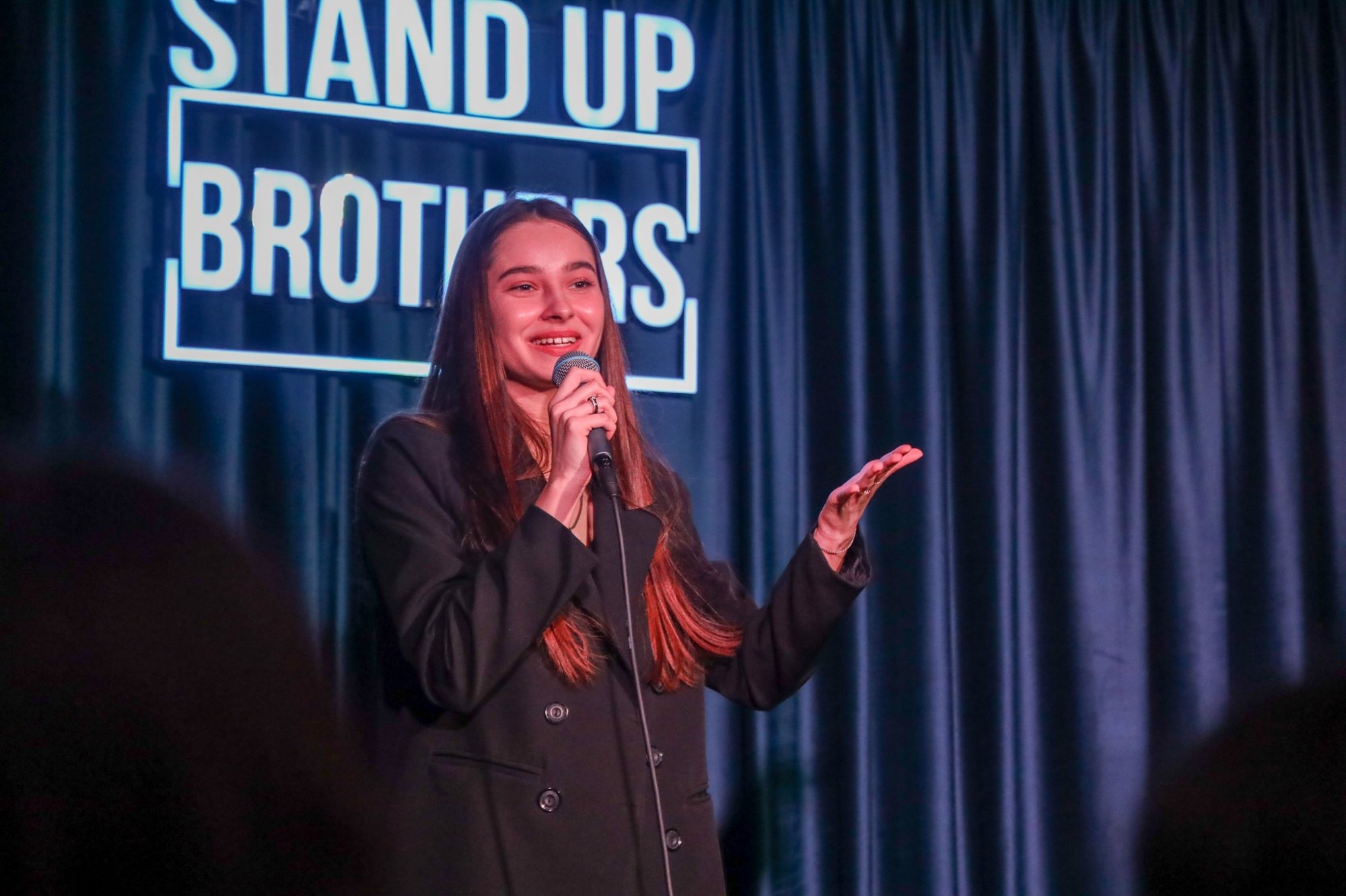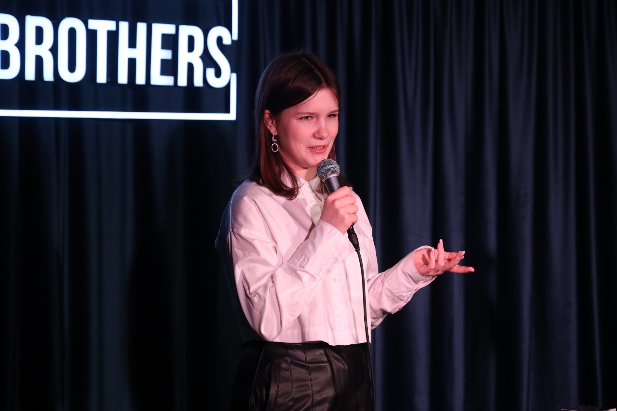 На профессиональной площадке Stand Up Brothers Club прошел отчётный концерт, в котором приняли участие студенты РосНОУ: Карина Элазян (ИБТ), Ваня Макаров (ИСИКТ), Амир Саломов (ГИ), Алина Стецова (ИСИКТ), Лера Гинец (ИБТ), Егор Гаврилов (ИСИКТ).