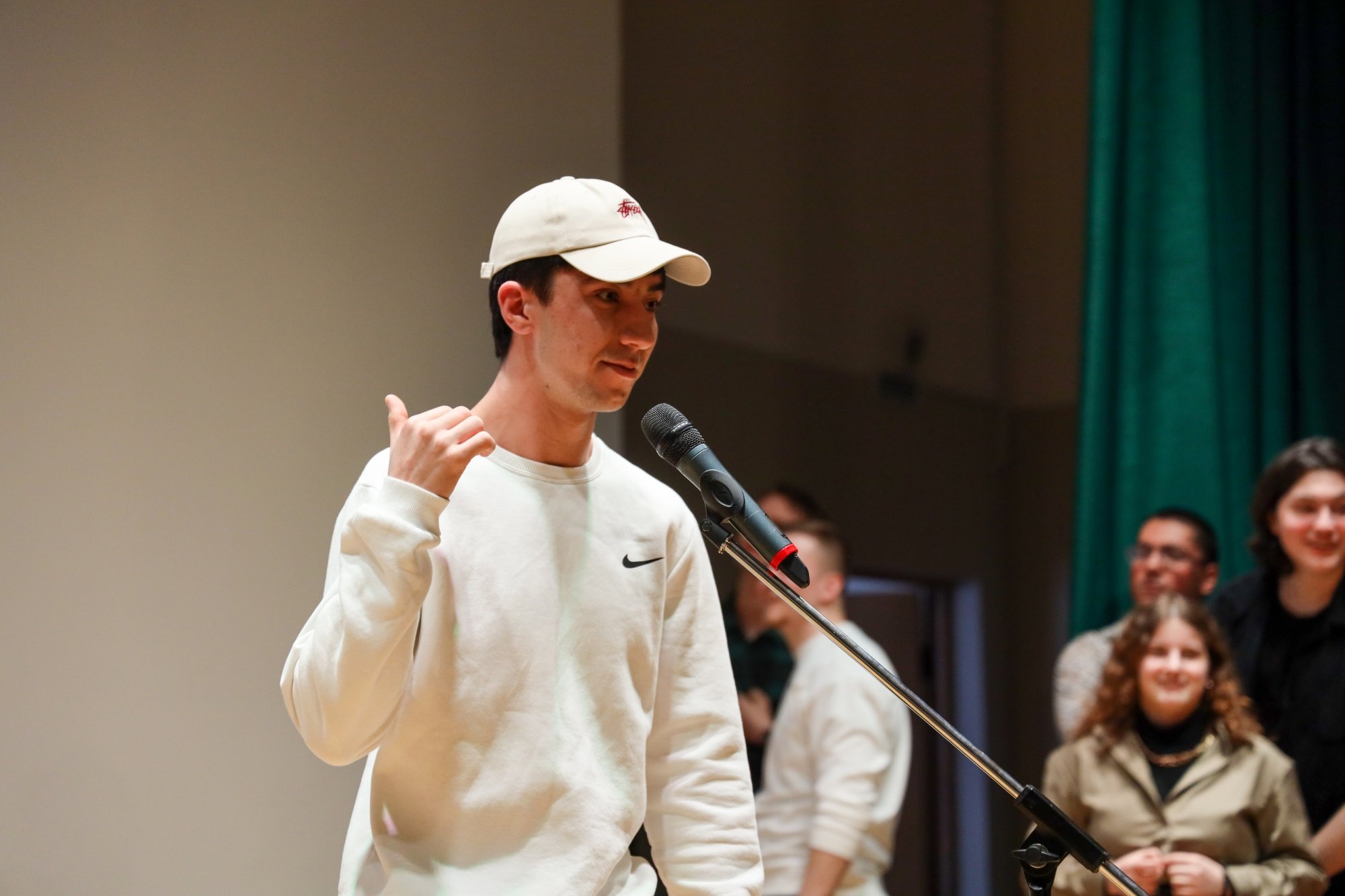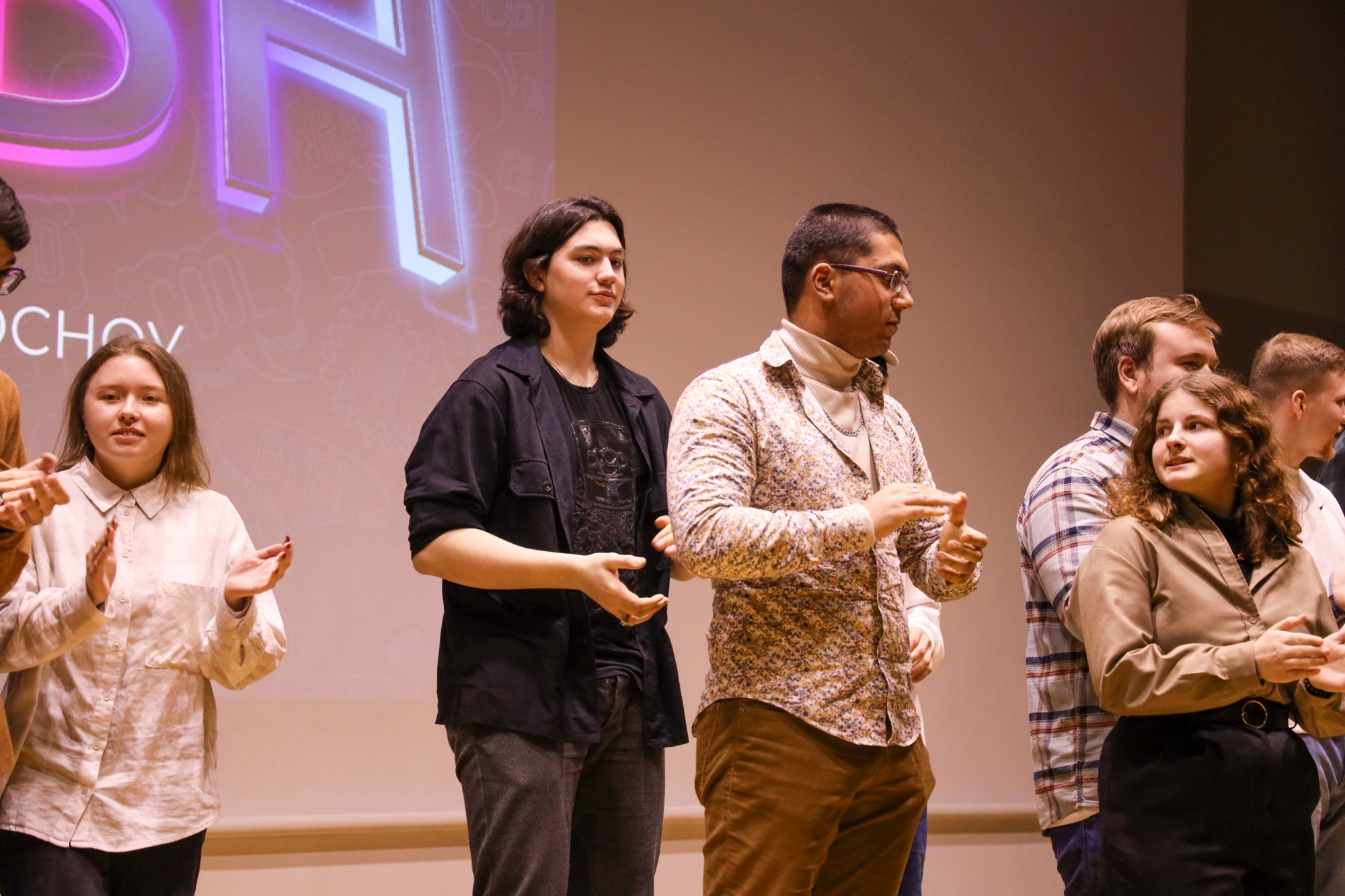 Для ведущей Екатерины Янгляевой это был дебют, она заметно переживала, но взяла себя в руки и сделала всё от неё зависящее. Наших участников оценивала команда жюри, а именно: чемпион белорусского КВН 1993 года в составе клуба «Репа» (физфак БГУ) руководитель проектного офиса РосНОУ — Игорь Евгеньевич Мытько; сотрудник РосНОУ, победитель всех победителей — Егор Колесников; сотрудник РосНОУ, победитель чемпионата по разминке в 1741 году или ближе — Михаил Федоров; ведущий специалист центра карьерного роста — Виктория Тургунова; участница Премьер лиги КВН 2022, 2023 в составе команды «Столица закатов», Нижний-Новгород, и Comedy Баттла на ТНТ — Тая Федянина.