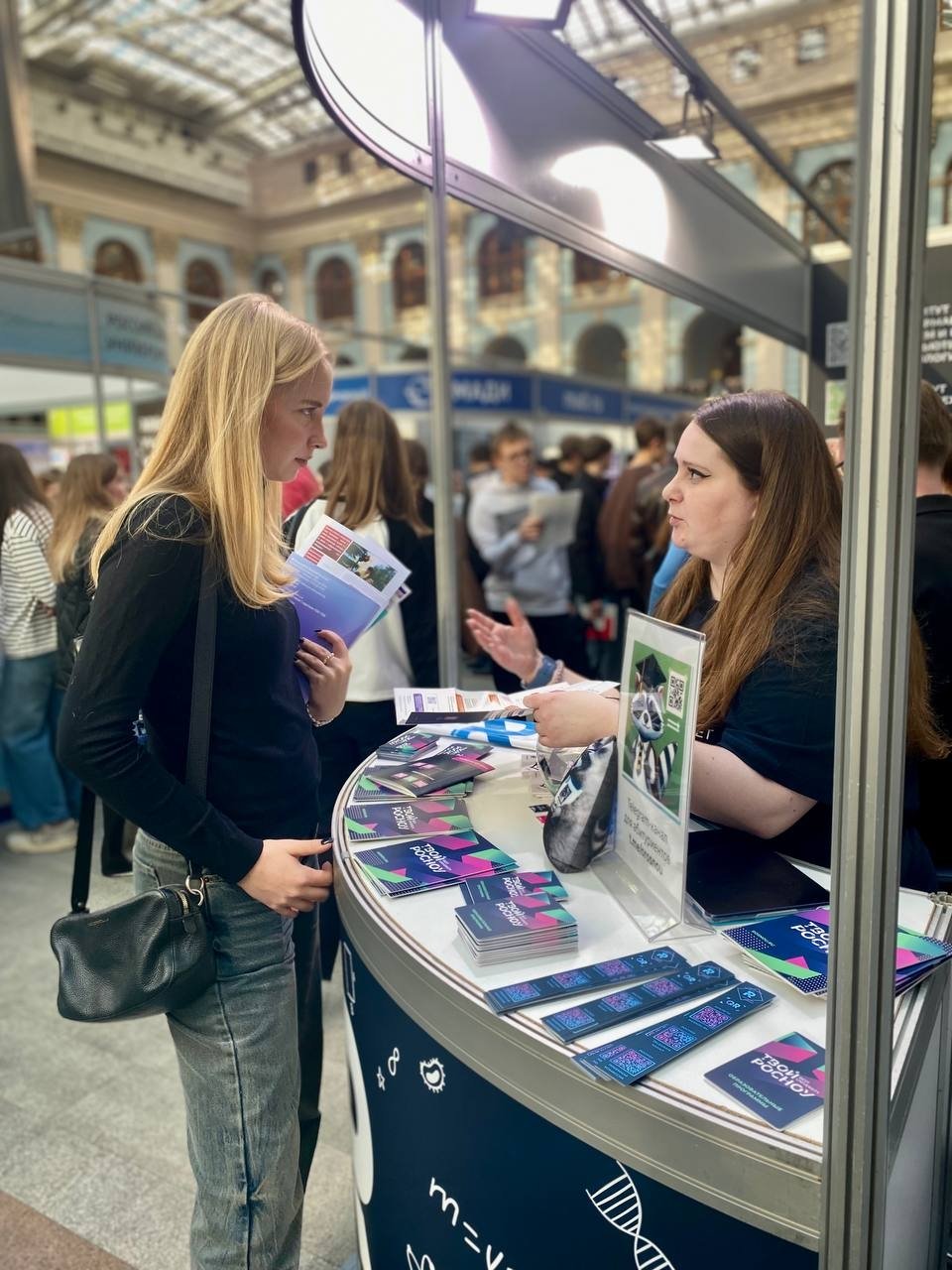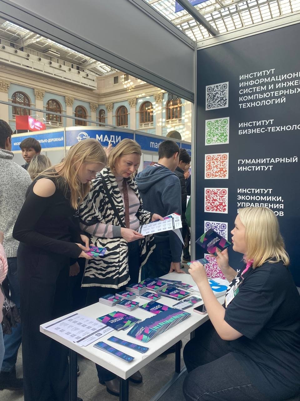 На выставке мы активно общались с посетителями, консультировали их, отвечали на вопросы. Чаще всего абитуриенты и их родители спрашивали про общежитие, бюджетные места и аккредитацию.