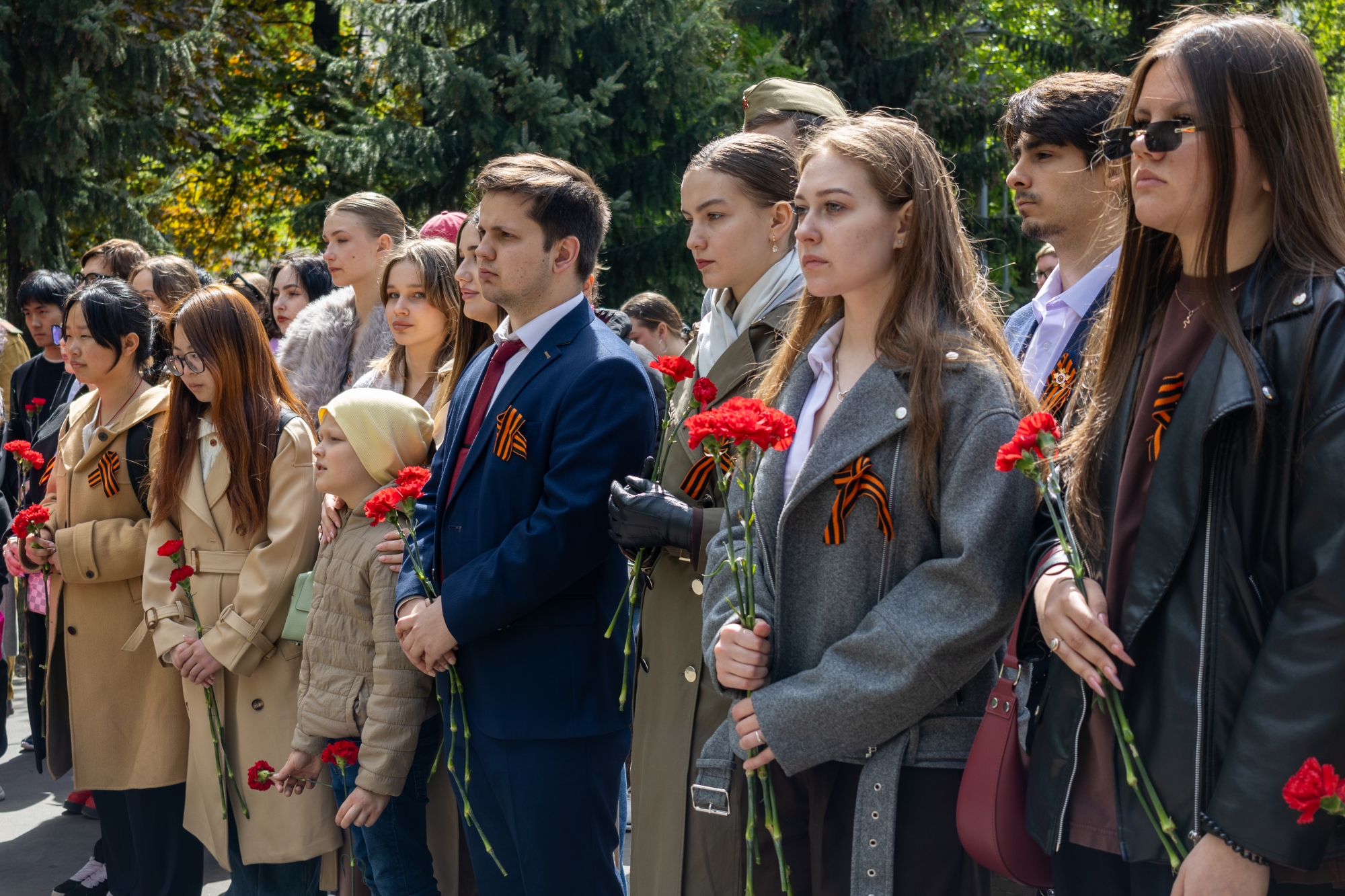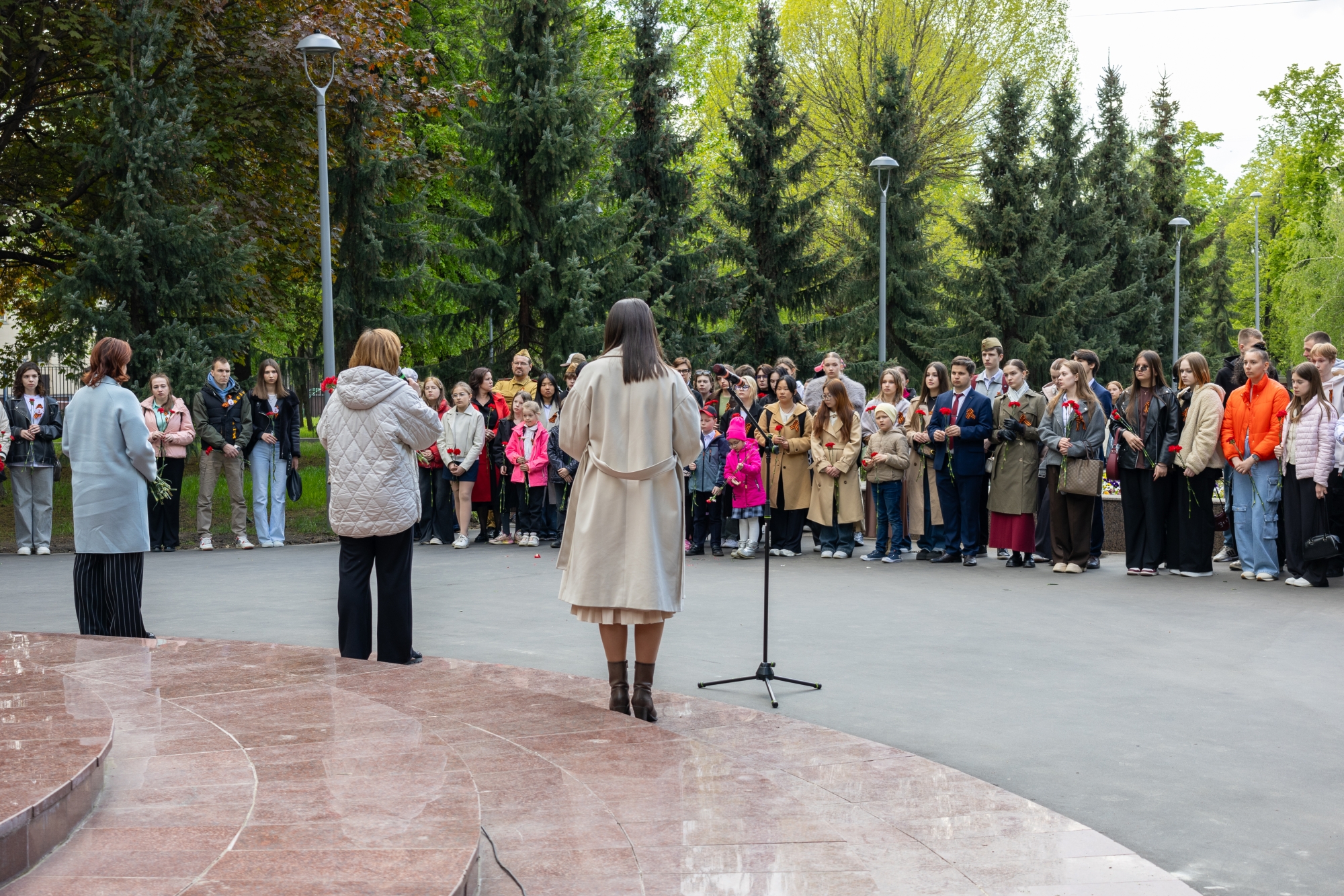 Я прежде всего хочу поблагодарить всех вас от имени Российского нового университета, от имени студенчества, ректората и профессорско-преподавательского состава за то, что сегодня вы нашли возможность прийти сюда, в этот сквер, чтобы почтить память советских воинов, которые отдали свою жизнь за наше с вами будущее и нашу жизнь. В песне Евгения Аграновича есть строчка: «Нет в России семьи такой, где не памятен был свой герой». В каждой нашей семье есть свои герои. Кто-то ушёл и не вернулся, отдал свою жизнь за то, чтобы мы с вами продолжили её. Есть те, кто вернулся и смог рассказать о том, что происходило в те страшные годы. Я горжусь тем, что в нашем университете мы создали проект «Память войны», где каждый из студентов и сотрудников может рассказать о героях своей семьи. Я хочу, чтобы мы помнили о своих дедах, прадедах и прапрадедах, которые воевали, о тружениках тыла, которые самоотверженным трудом ковали эту победу. Не зря говорят, что память сильнее оружия. Если мы будем помнить то, что происходило с 1941 по 1945 годы, мы никогда не станем совершать поступков, которые, к сожалению, ещё происходят в нашей жизни. Желаю вам мирного неба над головой, счастья, любви и радости в ваших домах и ваших семьях.