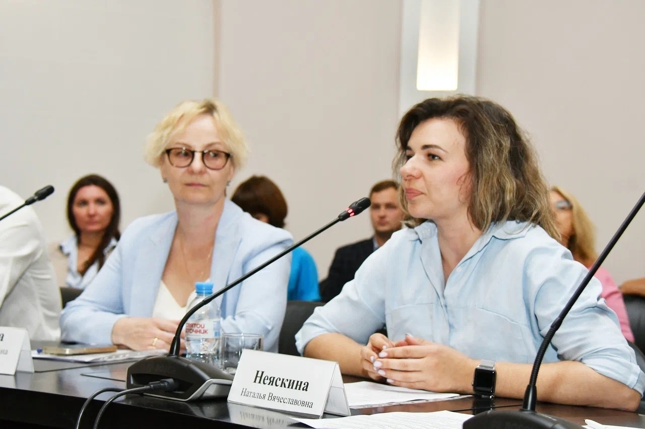 Российский новый университет представили первый проректор Елена Владиславовна Лобанова и генеральный директор Центра инновационной медицины РосНОУ Наталья Вячеславовна Неяскина.