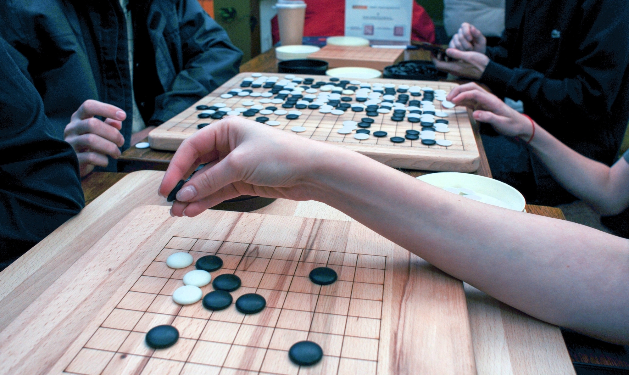 Го — логическо-стратегическая игра, созданная в Древнем Китае около двух тысяч лет до нашей эры. Два игрока стараются оградить своими камнями (фишками чёрного или белого цвета) как можно большую территорию на размеченной линиями доске. Побеждает тот, кто окружит больше территории, при этом камень или группа камней, окружённая фишками другого цвета, снимается с доски.