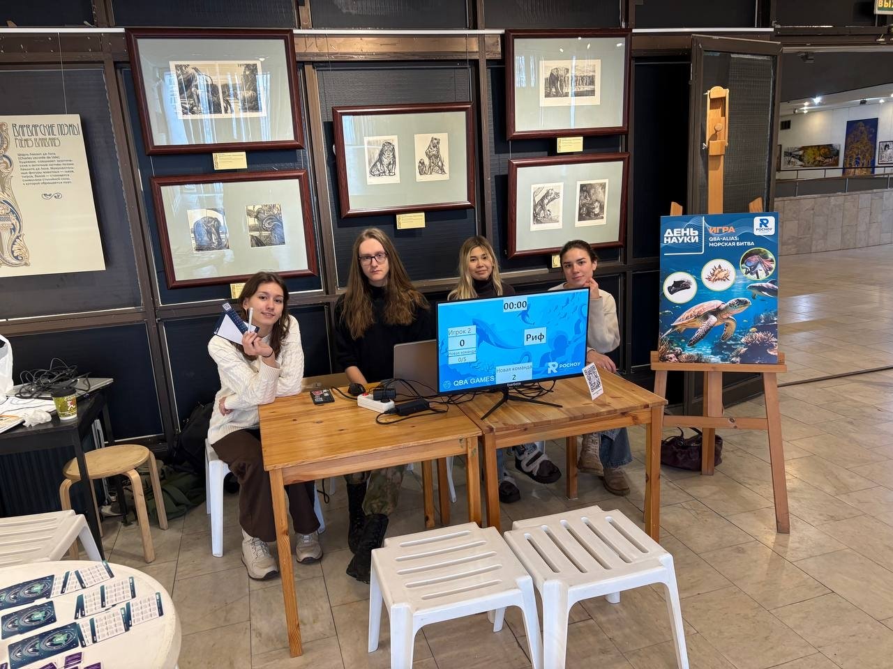 РосНОУ подготовил для посетителей музея особый «Alias: Морская битва» на глубоководную тему. Участники объясняли ассоциациями и синонимами появляющиеся на экране слова о ракушках, рыбах и пиратах.