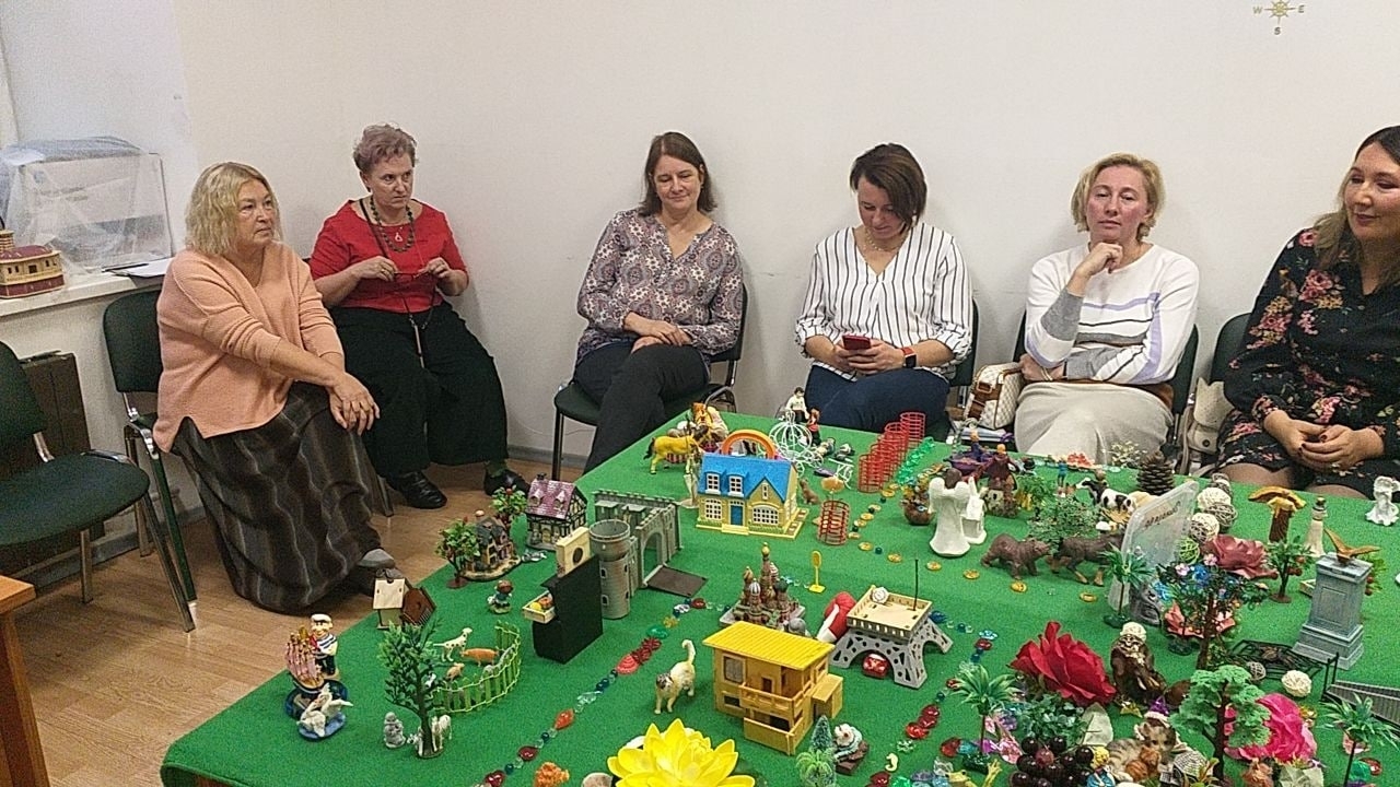 На одном из мастер-классов участники вылепили из цветного художественного теста фигурки и по специальной технологии обожгли их в печи. Оказывается, люди, обращающиеся за помощью к психологу, порой жалуются, что в песочнице нет подходящих фигурок для построения композиций, поэтому важна возможность сделать фигурки самостоятельно. А для психолога это — дополнительный рабочий материал.
