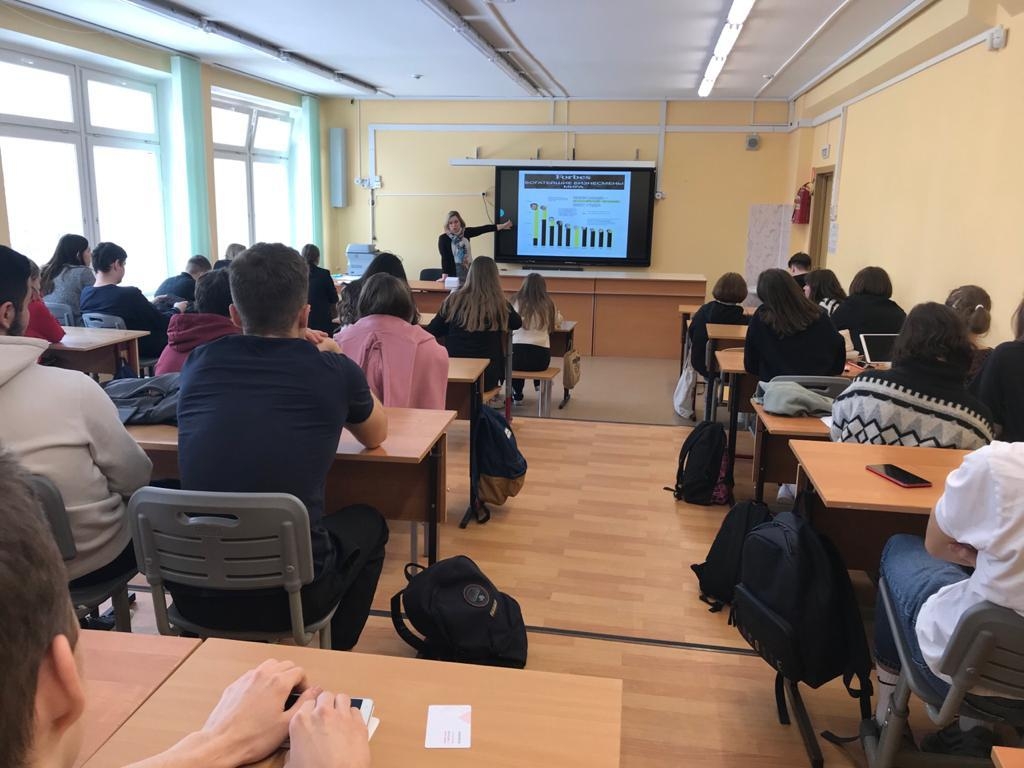 17 марта преподаватель Института экономики, управления и финансов РосНОУ Тамара Борисовна Соломатина встретилась с учащимися 11 классов экономического профиля школы № 1474 города Москвы. В ходе встречи были освещены особенности подготовки экономистов в РосНОУ и проведён мастер-класс «Просто о финансах».
