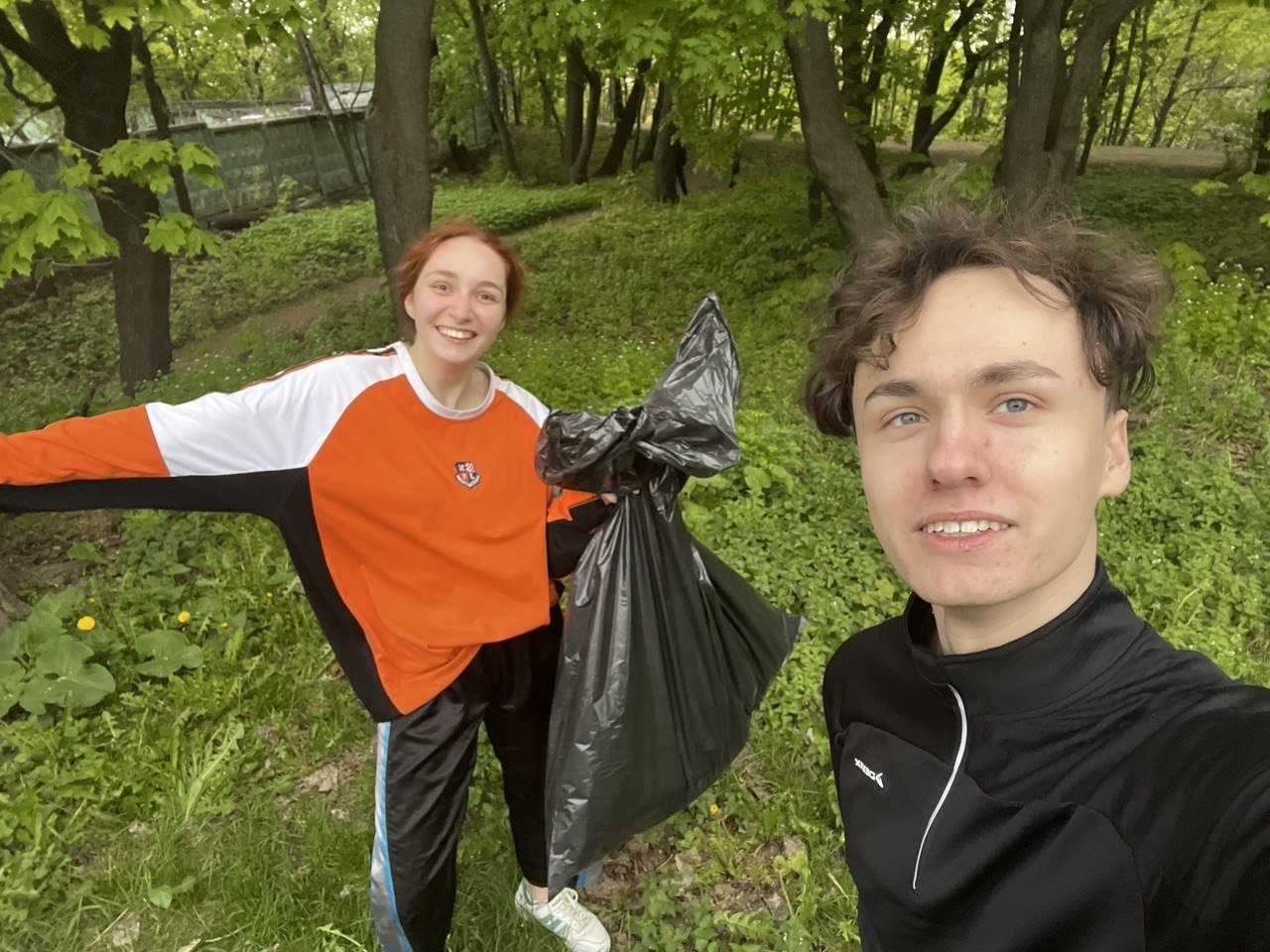 В акции «Зеленая дистанция» приняли участие трое студентов РосНОУ и НИУ «ВШЭ» — Диана Данильченко, Данил Казаков и Полина Алдобаева. Они пробежали 6,3 км от Парка Горького до Воробьевых гор и собрали несколько пакетов мусора.