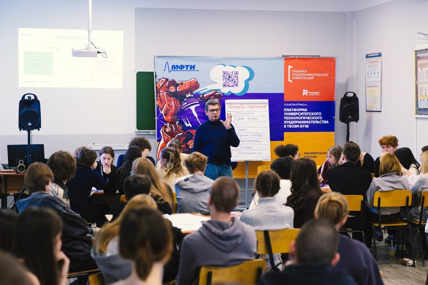 15 ноября 2025 года в Российском новом университете состоялся тренинг «Технологическое предпринимательство: запуск и развитие стартапа» Мероприятие организовали Московский физико-технический институт (МФТИ) и РосНОУ по гранту Минобрнауки РФ в рамках федерального проекта «Платформа университетского технологического предпринимательства». В мероприятии приняли участие студенты-первокурсники всех учебных подразделений университета, студенты и выпускники московских вузов.