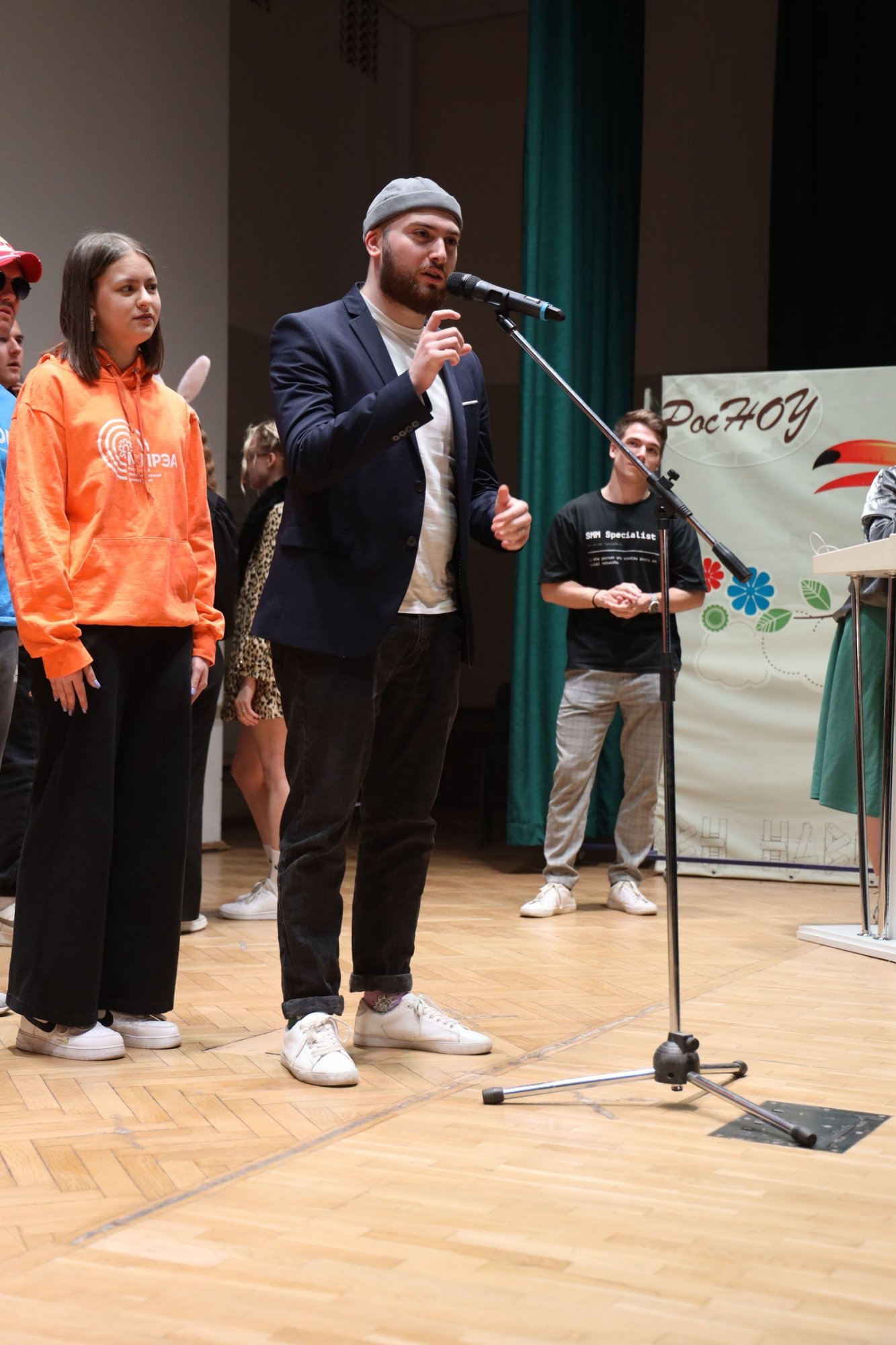 Спасибо большое командам за то, что приехали на чемпионат по импровизации на сцене РосНОУ. Получилось весело и забавно! Кстати, интересно, что победу для нашей команды вырвали три претендента в номинации «Персона Года». Будем рады видеть КПК, ГУУ и другие три буквы у нас в университете. Спасибо!