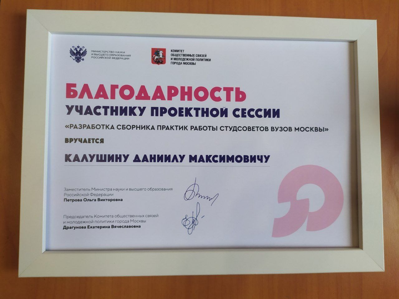 Студенты и проректор по молодёжной политике и воспитательной работе РосНОУ получили благодарности Комитета общественных связей и молодёжной политики города Москвы и Министерства образования и науки Российской Федерации.