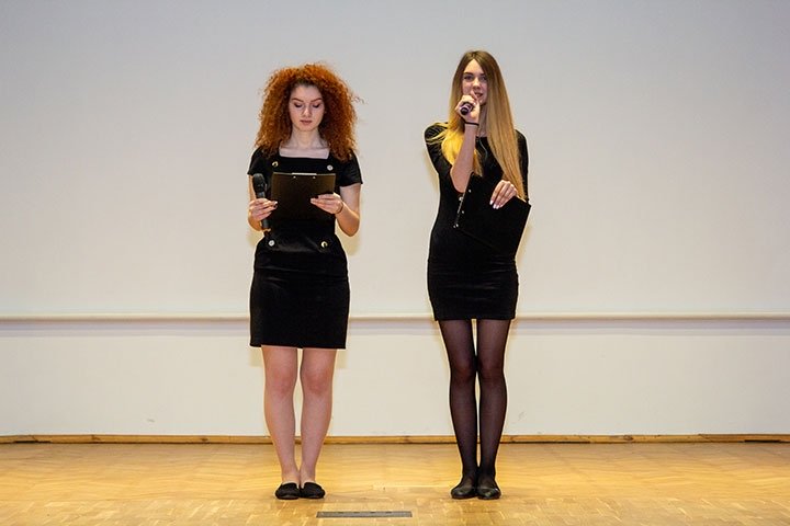 В Малахитовом зале гостей ждала презентация студенческой жизни. Перед ними выступили участники театральной и вокальной студий, а также сборная РосНОУ по КВН, которая недавно выиграла четвертьфинал Лиги городов Золотого кольца.