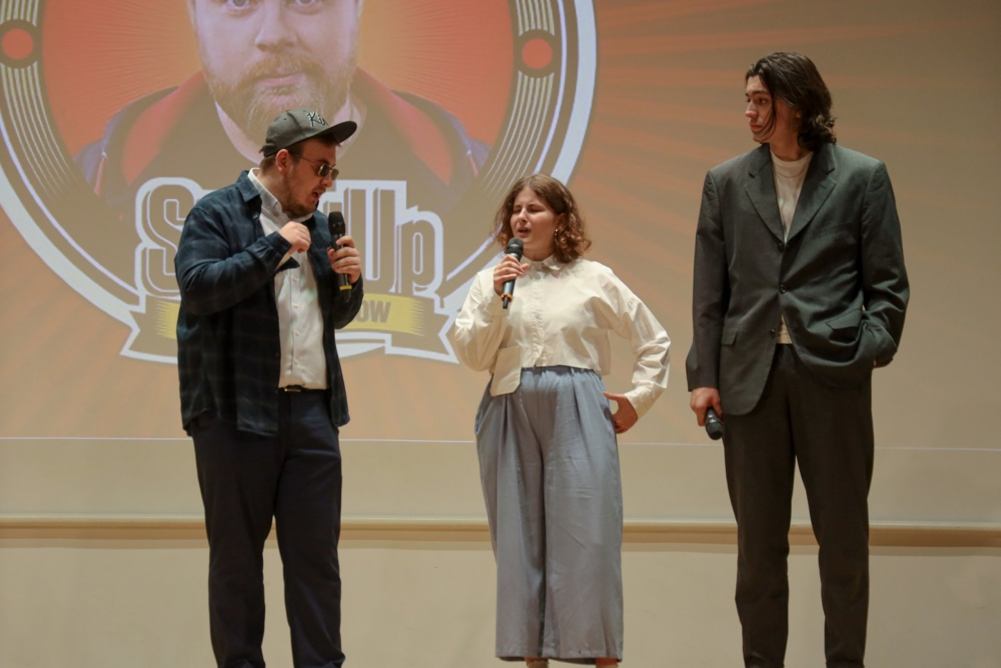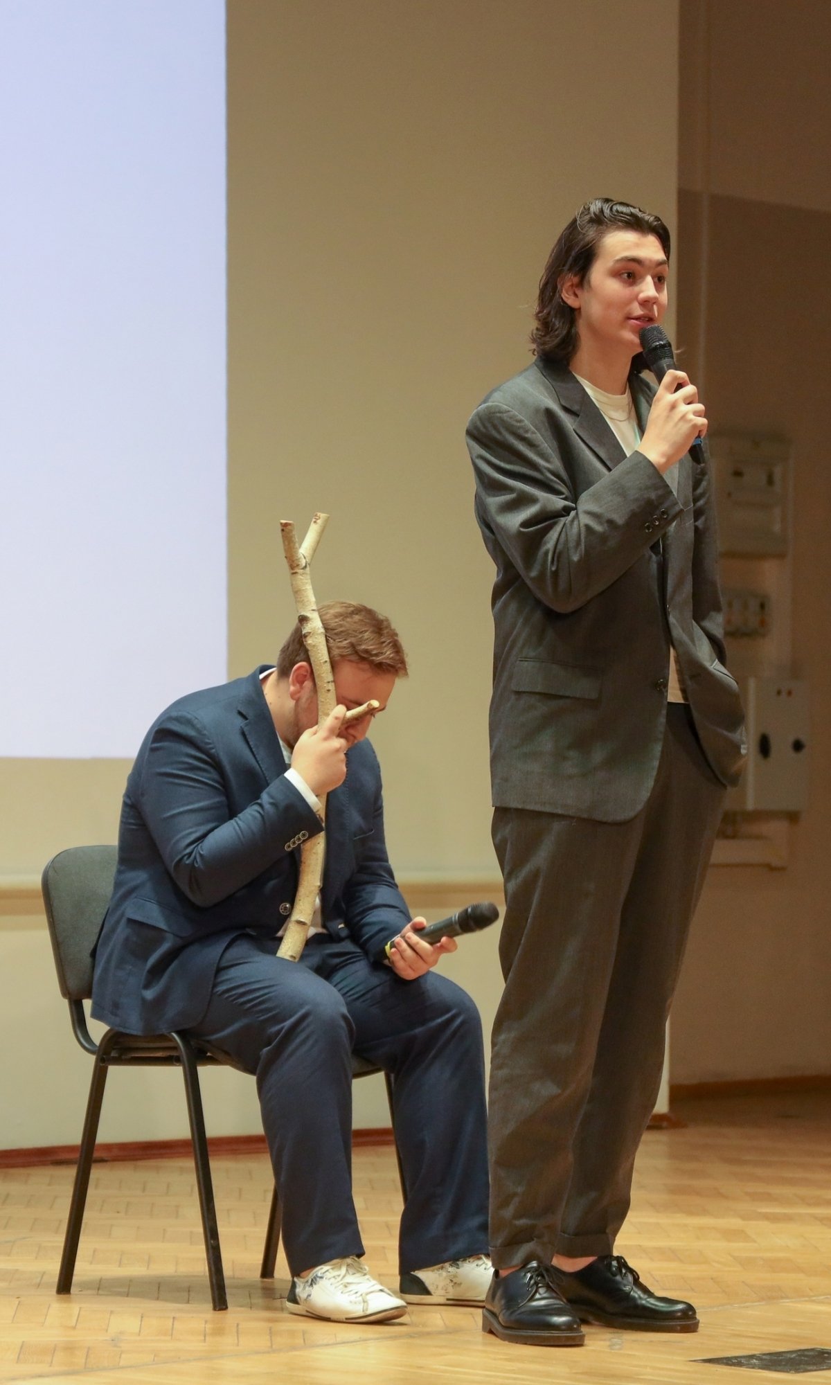 Я благодарен, что мне доверили такую ответственную работу — провести презентацию творческих студий.. Хочу выделить Полину — мою соведущую. Невероятно приятная и обворожительная девушка, с которой было круто работать. Её навыки импровизации и общения с публикой сделали этот вечер живым и весёлым. Впечатления от презентаций смешанные. Отдельно хочу выделить Медиаком и СПК. Было видно, как ответственно подошли руководители студий к представлению. Кстати, не забудьте записаться в Студию комедии. Ребята тоже старались!