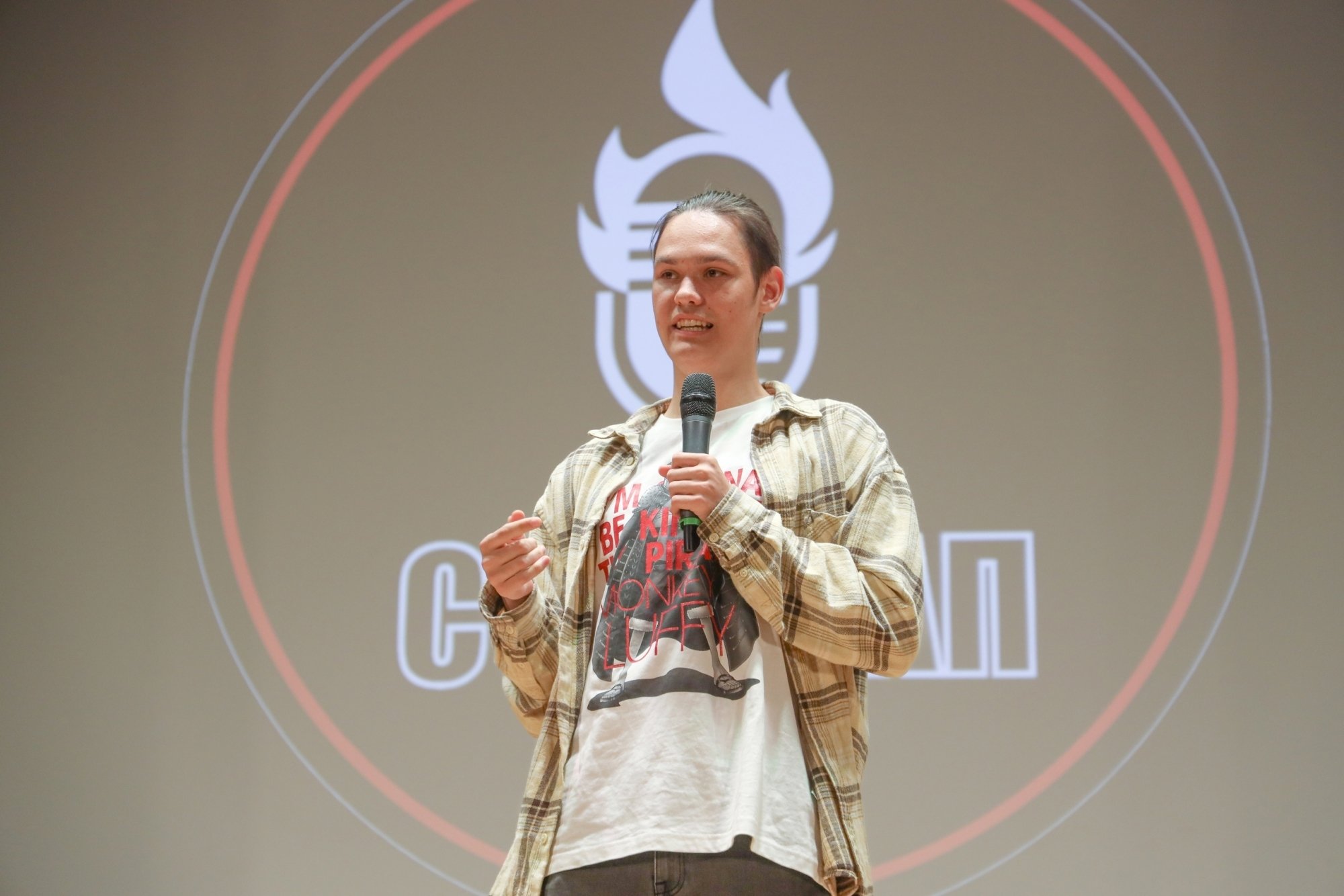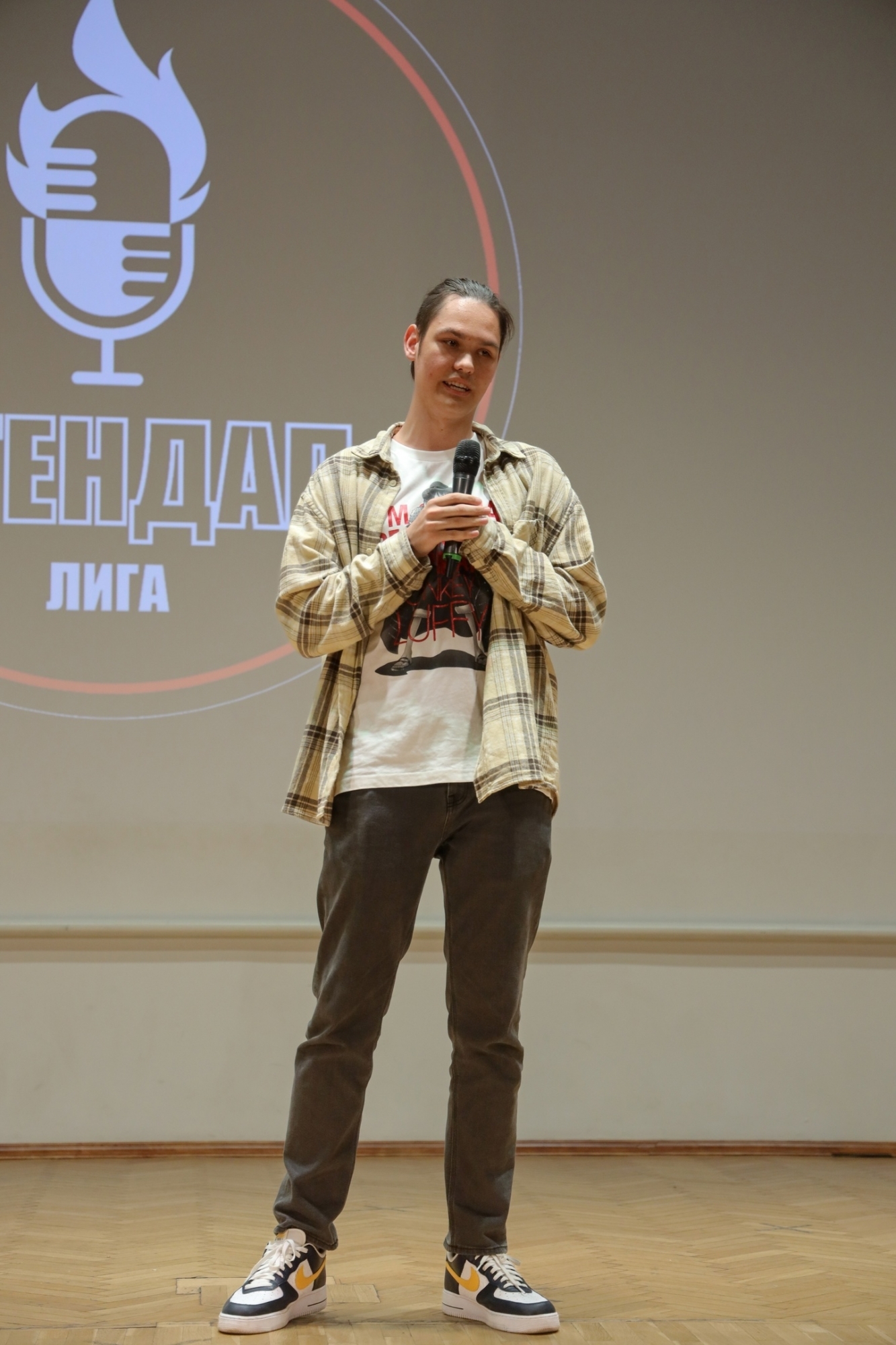 Стендап лигу представил комик РосНОУ, студент второго курса ИСИКТ Егор Гаврилов.