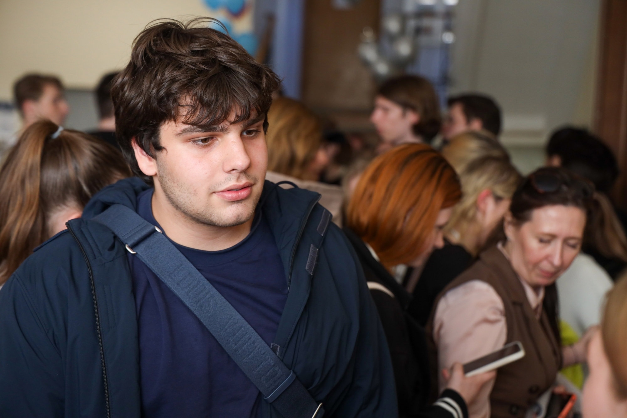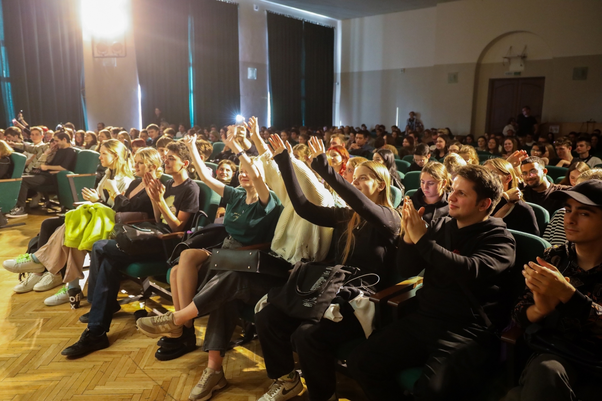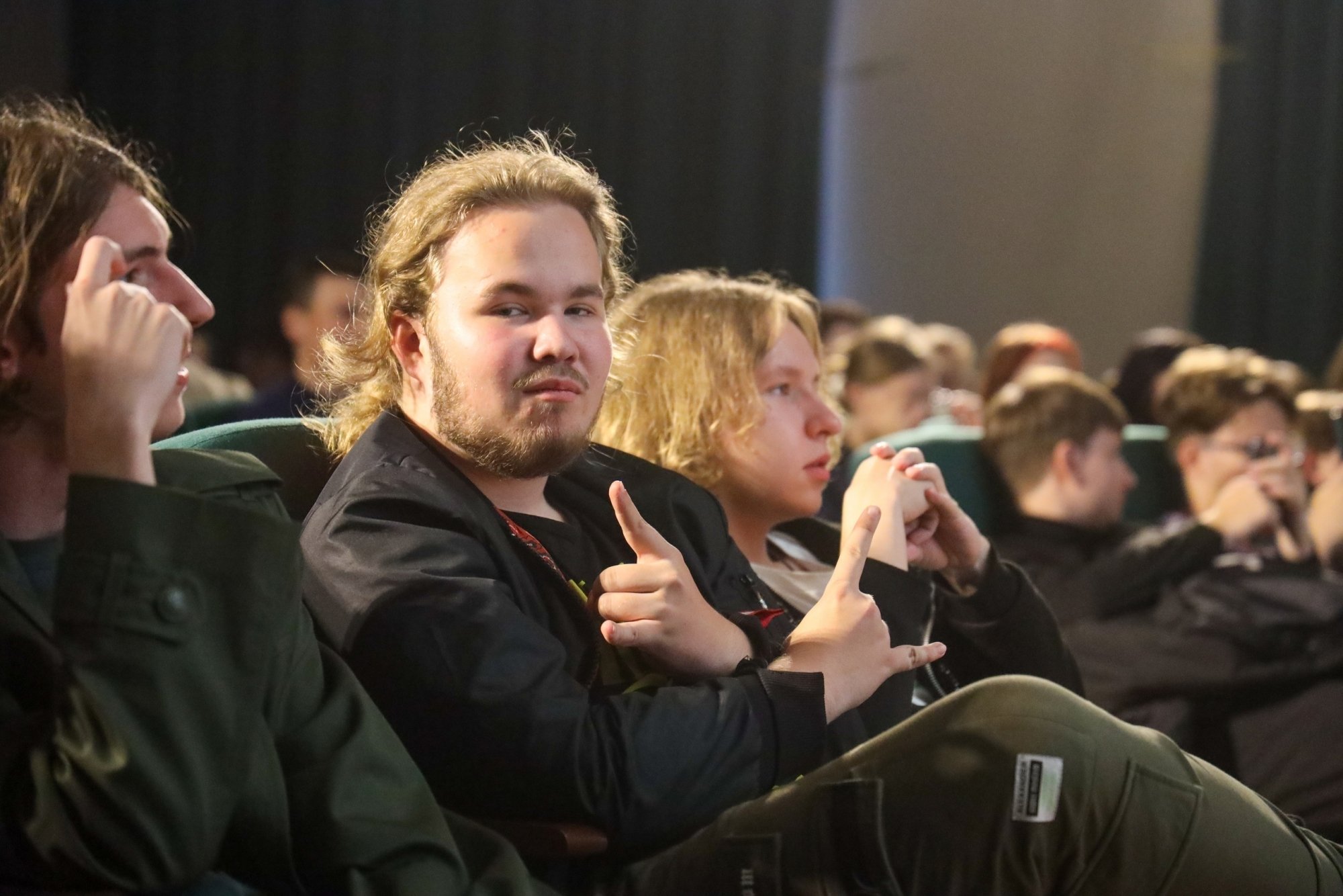 Семён Семенченков председатель Студенческого парламентского клуба провёл интерактив со зрителями. Все активно принимали участие. Команда СПК продемонстрировала свой мерч пройдясь по Малахитовому залу.