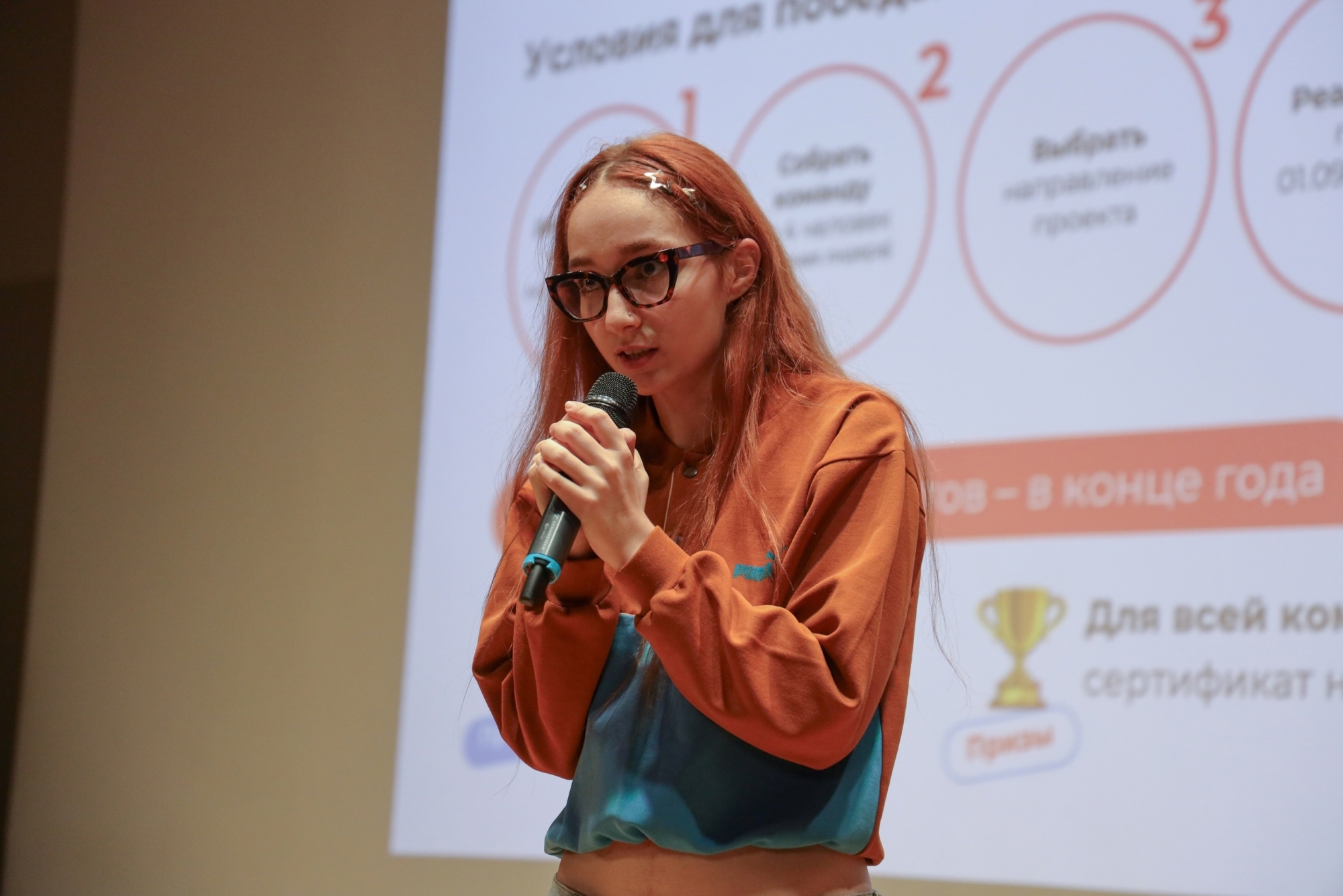 Со Всероссийским конкурсом «Твой ход» и своим проектом познакомила первокурсников Диана Данильченко.