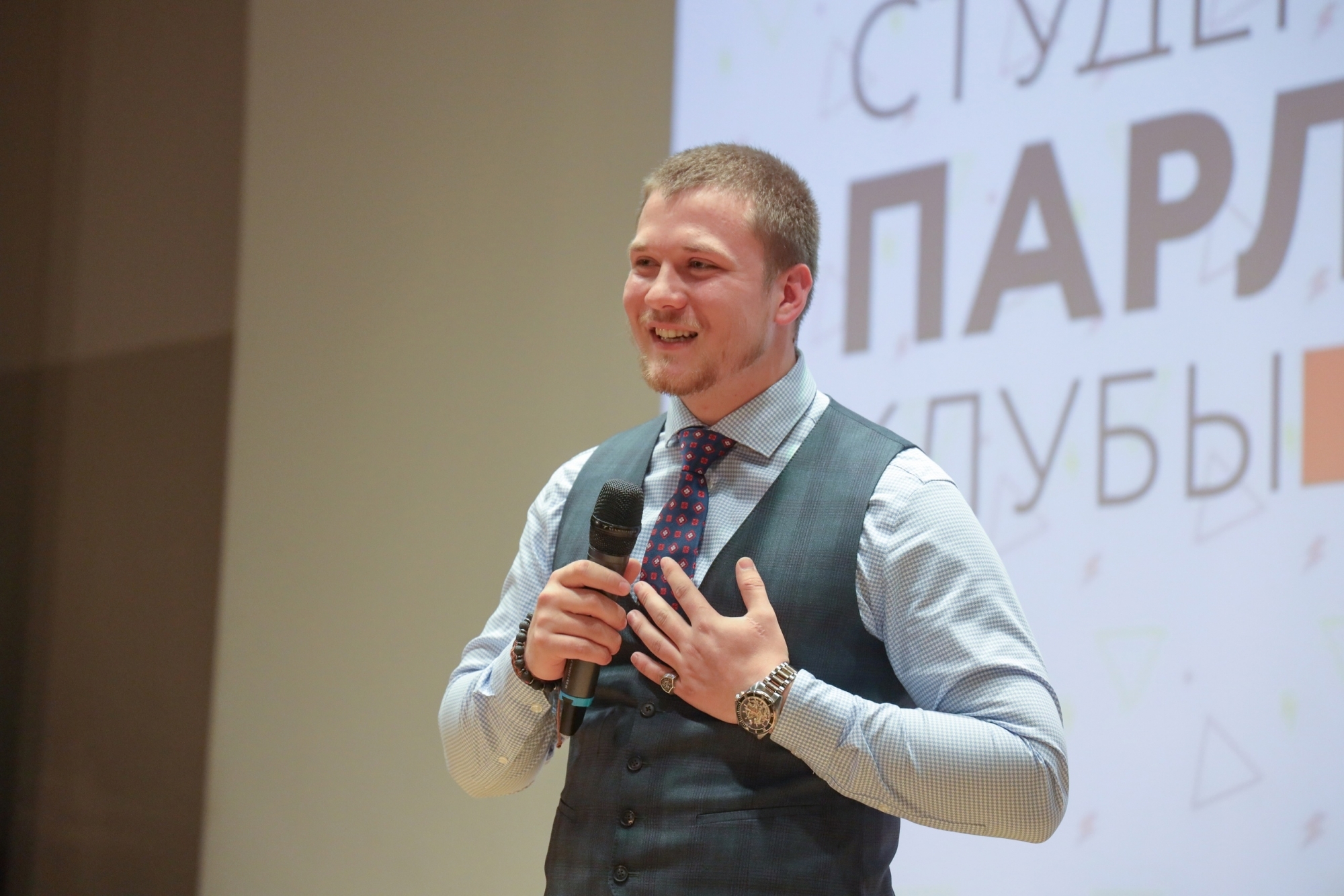 Открыл презентацию заместитель председателя студенческого совета Иван Сербин. Он рассказал, что из себя представляет студсовет, как попасть в эту команду и что нужно делать, чтобы получить повышенную стипендию или скидку на обучение.