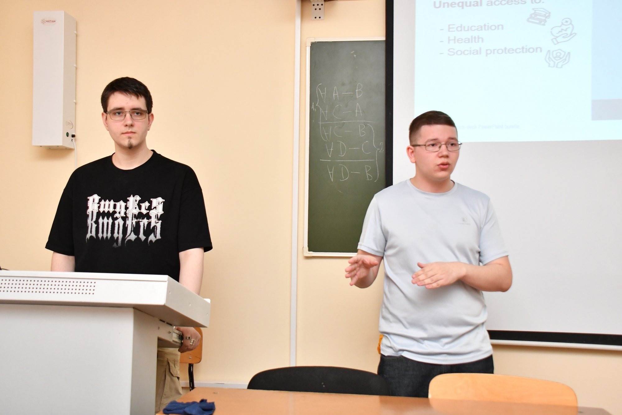Второй день мероприятия прошел под эгидой высоких технологий и «умной» экономики. Команда Виолетты Ващаевой представила проект исследования способов применения нейросети и VR в рекламе для снижения стоимости последней при повышении производительности труда. Ольга Летуновская и Серафима Кузнецова рассказали, как сделать рекламу стильной, модной и научиться продавать не саму продукцию, а ее выгоду и преимущество, поделились секретами, почему идеальная реклама должна быть «простой, смешной, а иногда и глупой». Никита Соколов, Матвей Панферов, Антон Маринченко Антон и Денис Колпаков погрузили аудиторию в тему экологичного применения технологий 3D-печати, отдельно отметив ее риски, такие, как использование 3D-принтеров для производства оружия. Тимофей Коблик, Андрей Минаков, Наталья Бутенко, Евгения Белова, Екатерина Андришина и Сейид Исмаилов представили концепцию идеального офиса, работа в котором будет комфортной и эффективной, и предложили реализовать на практике модель такого помещения в кабинетах РосНОУ. Андрей Донсков познакомил участников семинара с умным регулированием в экономике на основе стремления к децентрализации и опоры на обратную связь «снизу», а Юлиана Прудникова и Феликс Хан поразили слушателей анимированной презентацией о 3D-графике, математическом моделировании в сфере дизайна с использованием технологии «Motion Capture». Интересный исследовательский проект, объектом которого является web-сайт как продукт информационного поля, представила Елизавета Гоглева. Кристина Пилевина и Вита Мартина исследовали тему разработки и внедрения в экономику автономных транспортных средств как элементов рынка AutoNet.