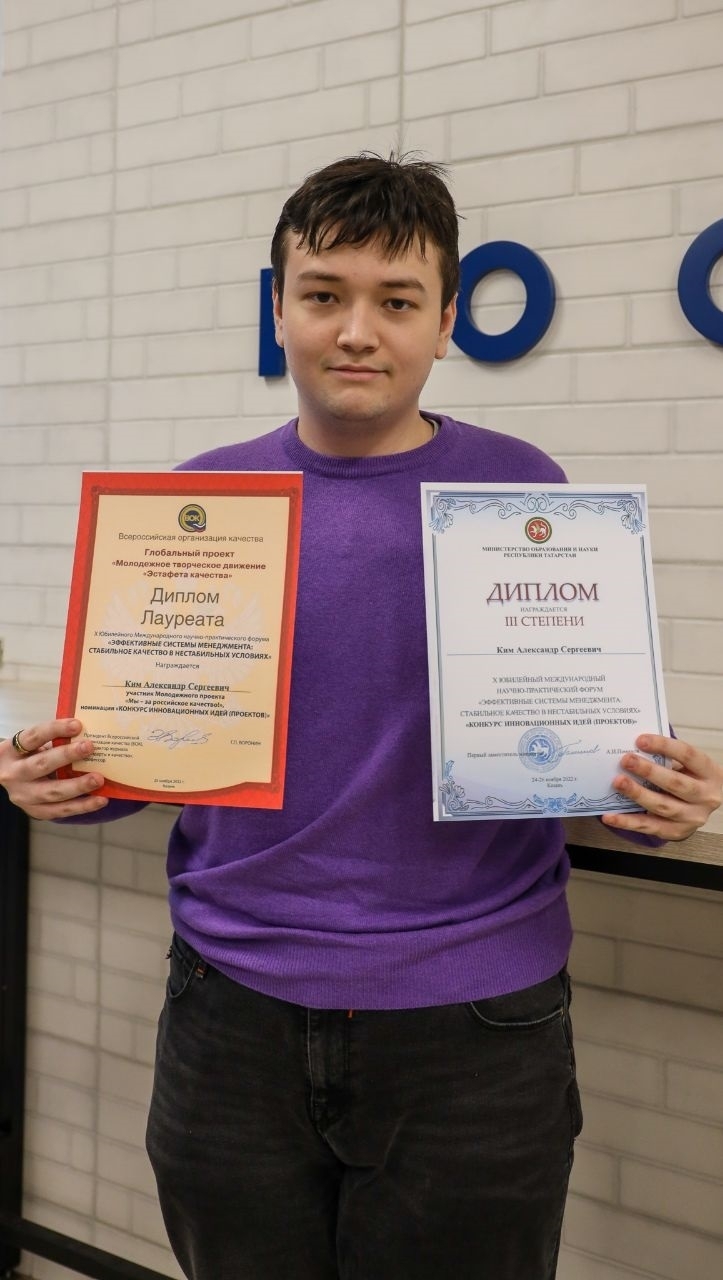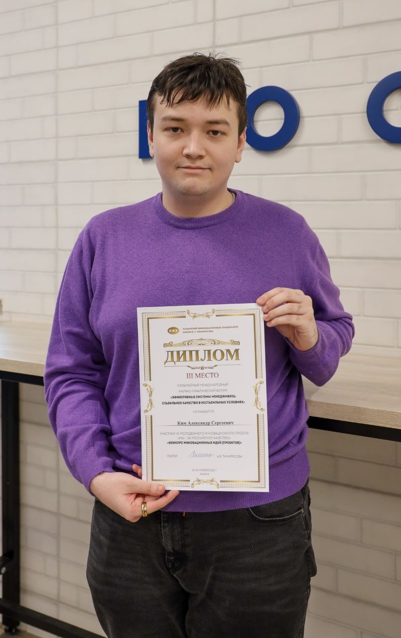 Александр Ким, студент 3 курса направления подготовки «Гостиничное дело» Российского нового университета (РосНОУ), занял 3 место в конкурсе молодёжного проекта «Мы — за российское качество!».
