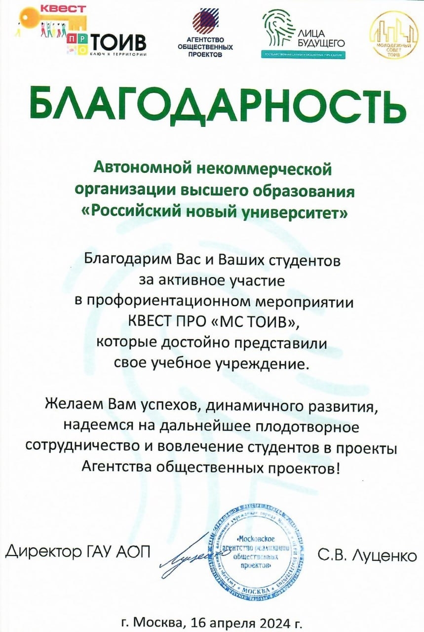 Профориентационный КВЕСТ ПРО «МС ТОИВ» состоялся в пространстве «ЛИЦА». 90 студентов познакомились с деятельностью управ и префектур города Москвы в рамках проекта карьерных траекторий «ЛИЦА будущего» и трёх его основных направлений: