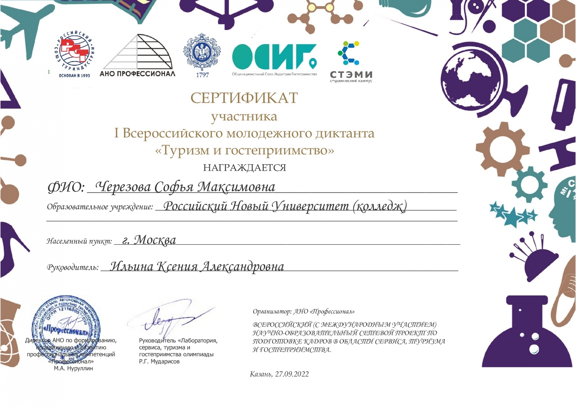 Студенты колледжа РосНОУ, обучающиеся специальности «Туризм», получили высокие баллы на I Всероссийском молодёжном диктанте «Туризм и гостеприимство».