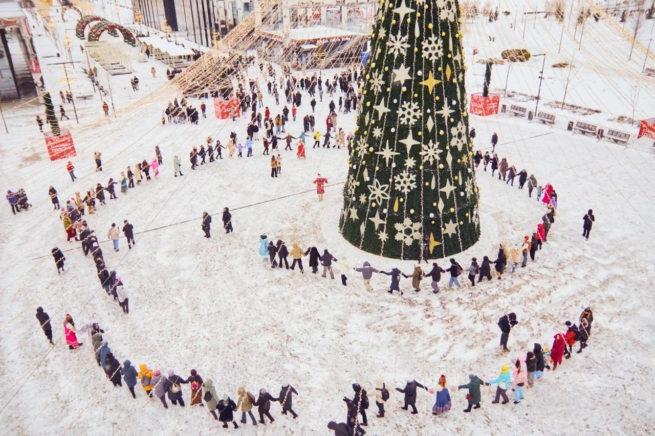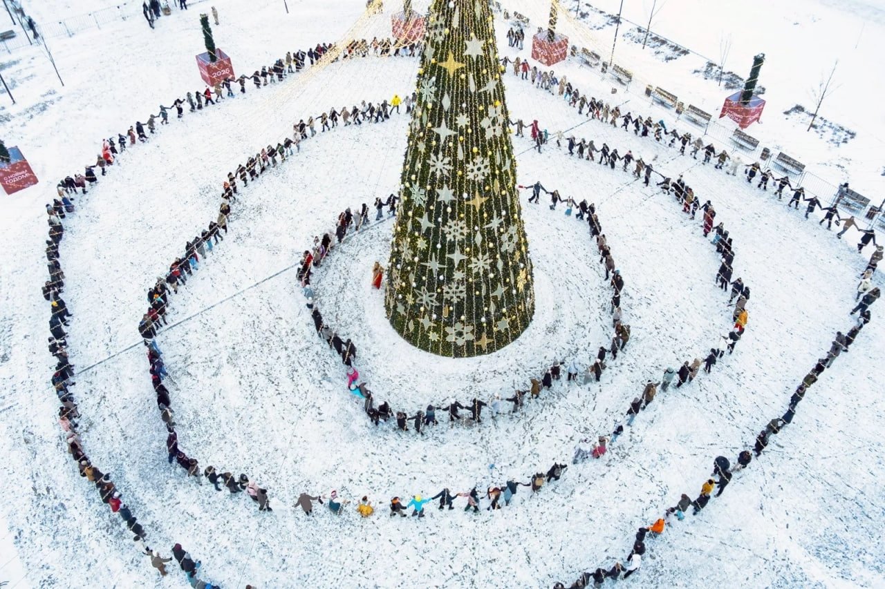 Мероприятие прошло в парке «Ходынское поле», в нём приняли участие около 1500 человек. Там они обняли столицу — собрались в новогодний хоровод вокруг ёлки. Акция прошла в рамках проекта «Зима в Москве», её организовало молодёжное сообщество «STOлица».