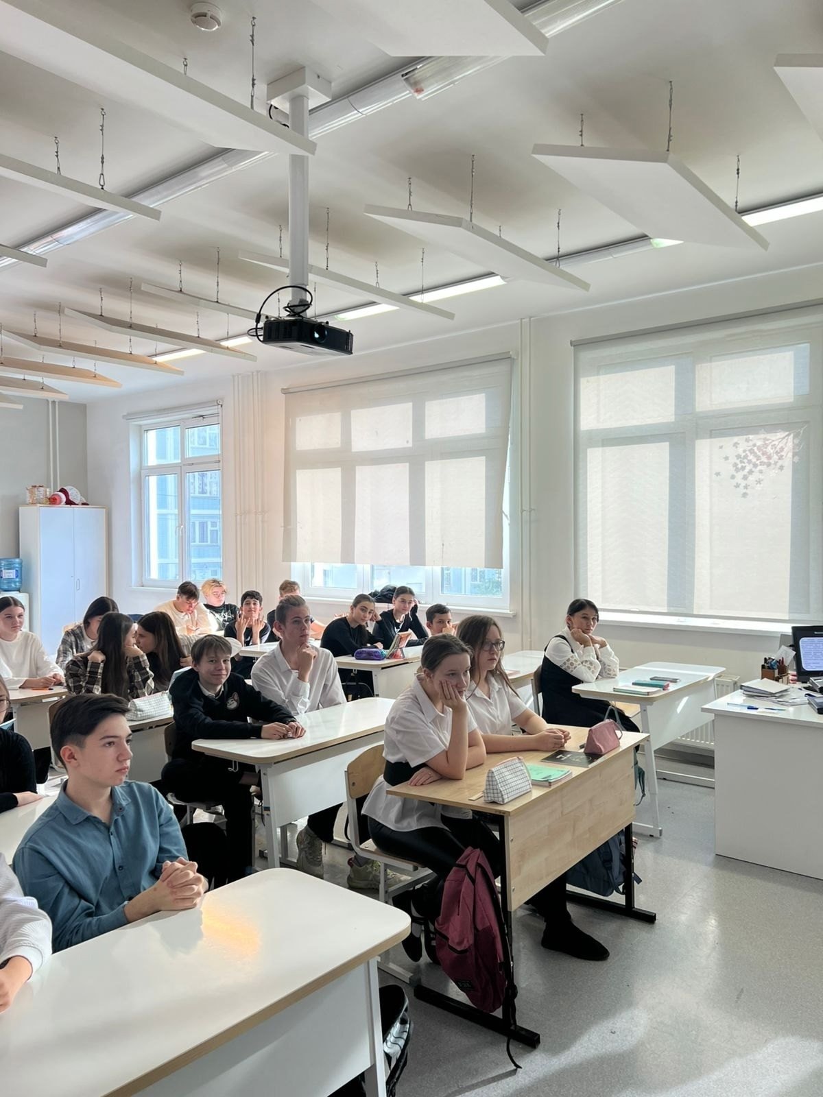 В СОШ № 29 студентов сопровождала преподаватель Колледжа РосНОУ Анна Леонтьевна Дубровка. Авторское занятие — мастер-класс — она разработала вместе с ребятами.