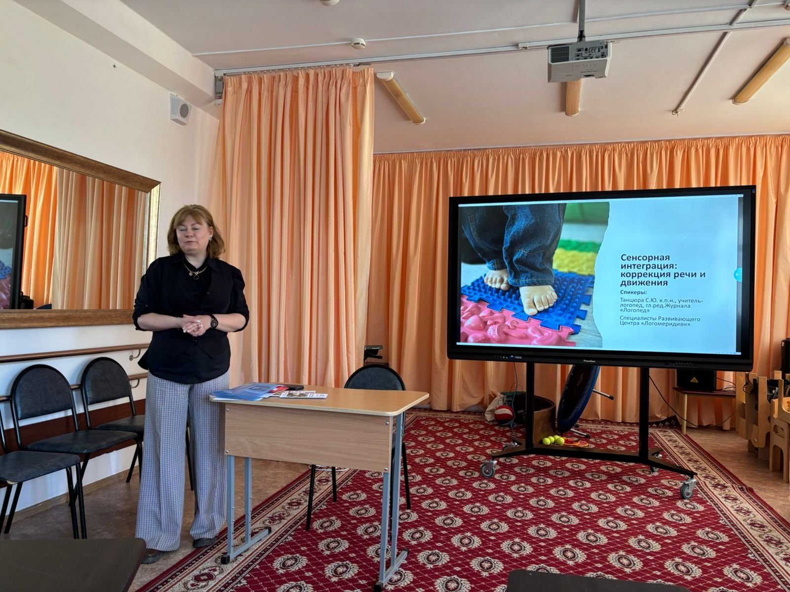 Специалисты центра представили современные методики реабилитации детей с ДЦП: рассказали студентам о нейропсихологической коррекции и физической реабилитации. Снежана Юрьевна Танцюра представила проект сенсорной интеграции, реализуемый в развивающем Центре «ЛогоМеридиан» на базе РосНОУ. В рамках встречи выступили участники музыкального ансамбля «Солнечные нотки» — дети с особыми образовательными потребностями, которые исполнили песни и сыграли на музыкальных инструментах.