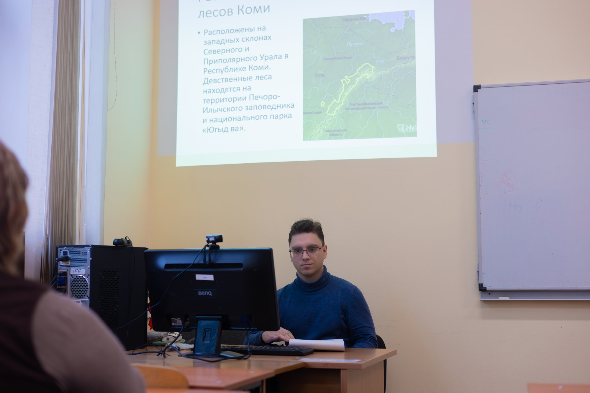 Георгий Станин выступил с докладом «Развитие экологического туризма в девственных лесах Коми». Он рассказал о том, что в 2023 году заповедники и заказники России посетило более 14 500 000 человек, что говорит об огромном потенциале этих территорий. Он упомянул, что в список Всемирного наследия ЮНЕСКО включены 29 российских объектов, имеющих уникальное культурное и историческое значение: 18 созданных человеком и 11 природных. Всё это можно и нужно использовать для привлечения туристов из всех регионов нашей страны и со всего мира. Георгий подробно рассказал о девственных лесах Коми — они были включены в список ЮНЕСКО в 1995 году —, сделав акцент на том, что может заинтересовать там гостей.