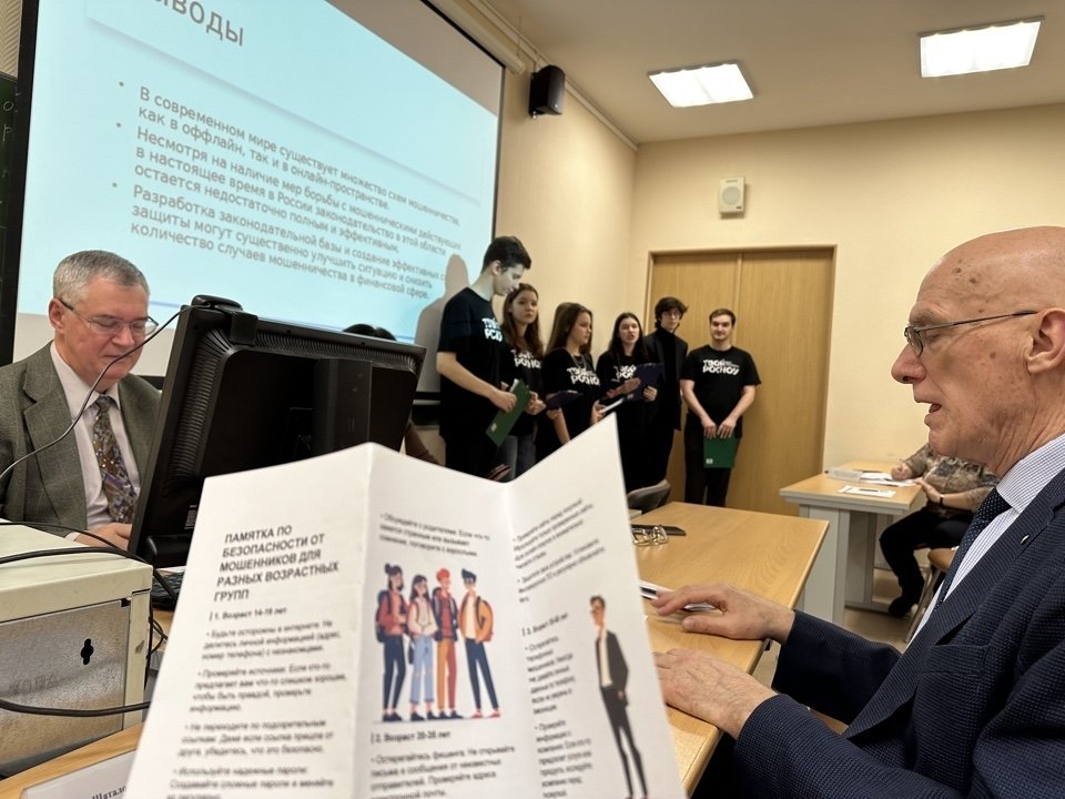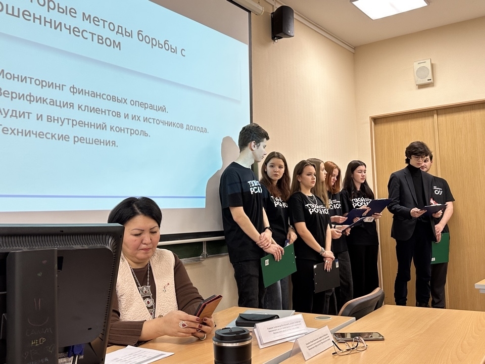 Команда студентов 2 курса (Азамат Тимиргалиев, Алёна Соловьёва, Алиса Ершова, Анна Юркова, Данила Таранов, Екатерина Воловатова, Максим Фомин, Полина Иванова, Янис Лайос) представила доклад «Мошенничество в банковской сфере: современные угрозы и методы защиты». В конце выступления ребята вручили членам жюри памятку по безопасности от мошенников для разных возрастных групп. Команда студентов 4 курса (Андрей Таперо, Артём Спиридонов, Данила Серков, Иван Сербин, Софья Бабинцева) осветили тему «Использование международного опыта для повышения роли финансовых институтов в достижении технологического лидерства России».