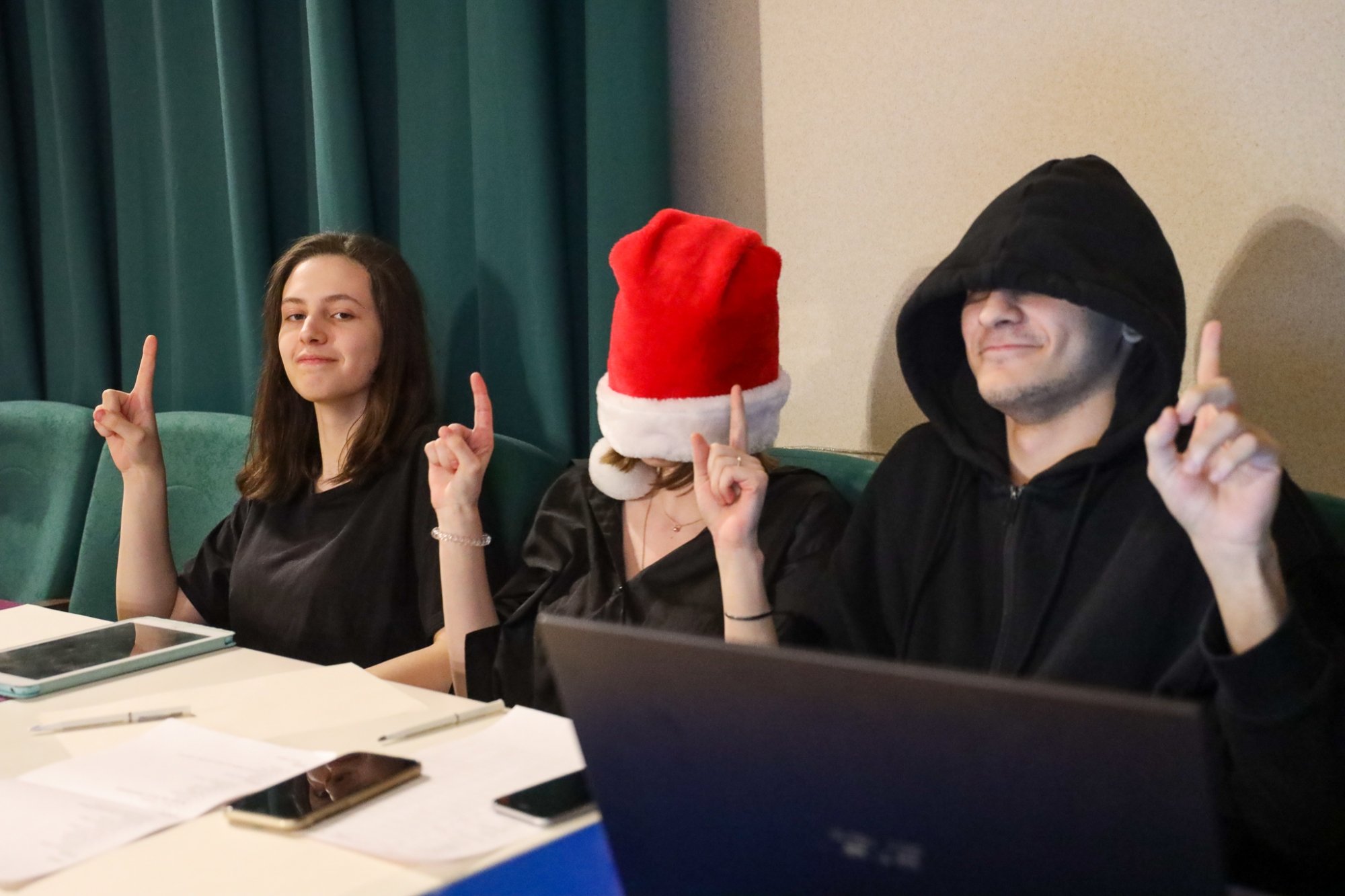 Лидерами новогоднего квиза неожиданно оказались сотрудники университета — команда «Почти в сборе». Они набрали максимальное количество баллов, получили заслуженные аплодисменты и огромное удовольствие. Команда выступала вне конкурса, как и команда «В тупике», показавшая достойный результат.
